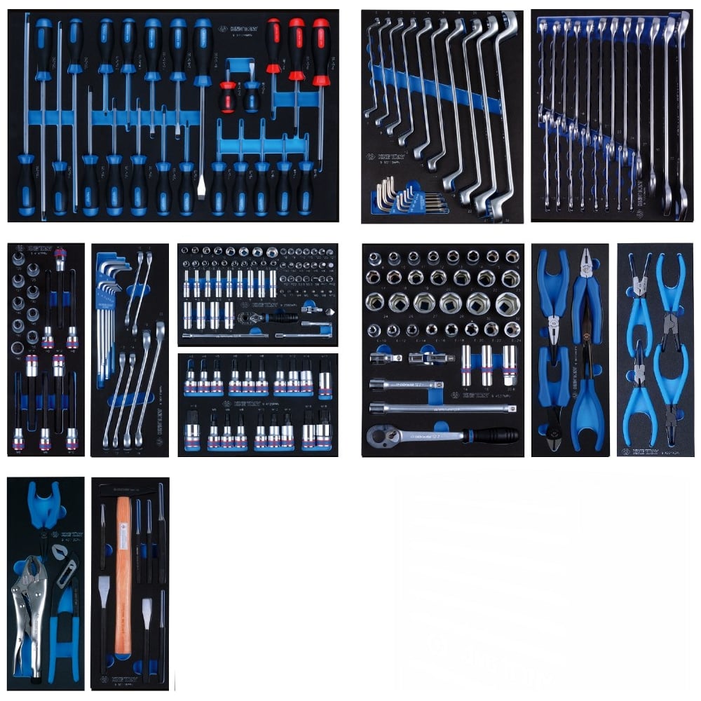 Набор инструментов для тележки (12 ложементов, 235 предметов) KING TONY 934-235MRVD представляет собой богатый ассортимент профессиональных приспособлений. Инструменты предназначаются для работников автосервисов, сотрудников ремонтных отделов автопарков. Набор подходит для обслуживания автомобилей VOLKSWAGEN-GROUP, Mercedes-Benz, Opel, BMW и японских пассажирских машин.