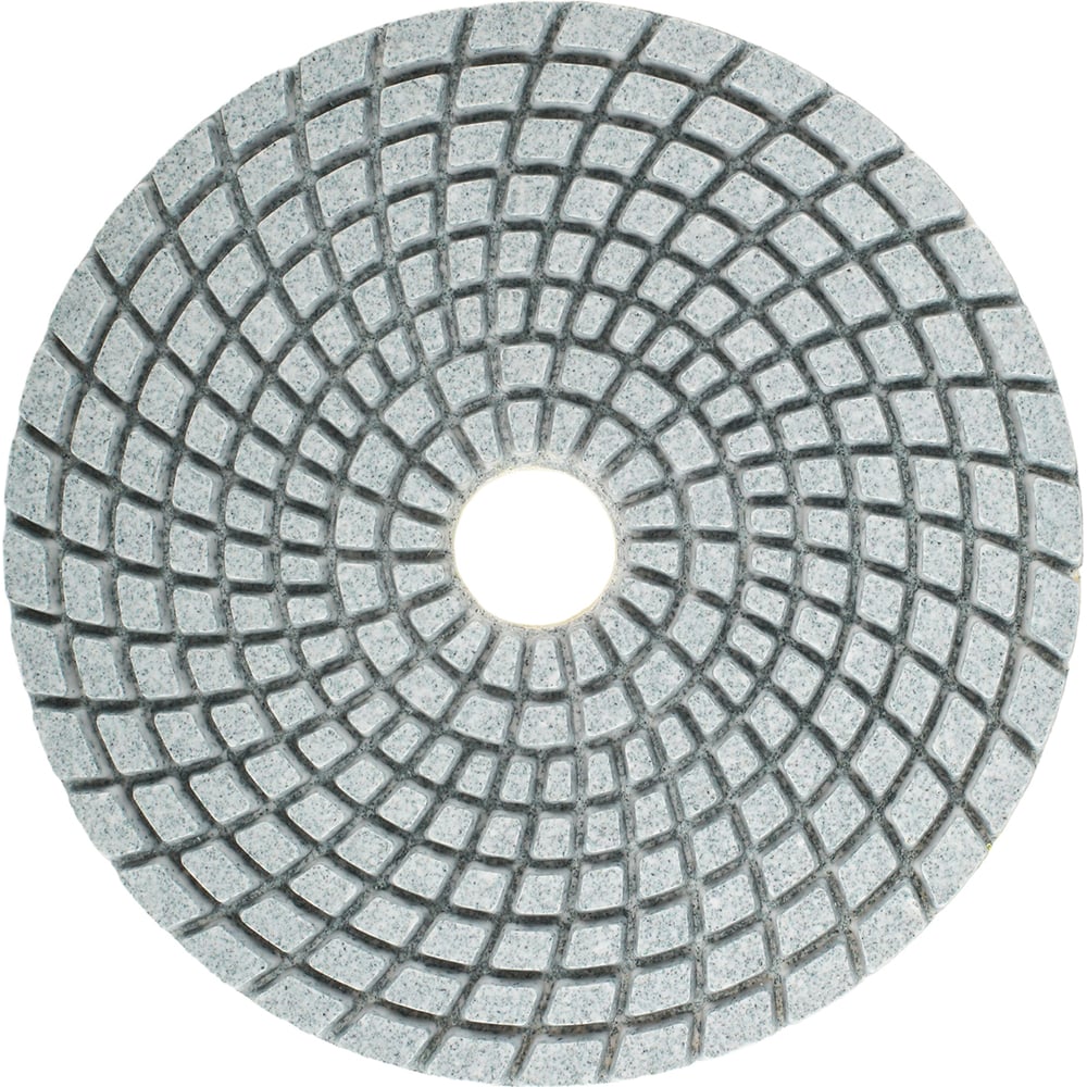 Алмазный гибкий шлифовальный круг Р100 125мм мокрое шлифование RAGE by VIRAКруг шлифовальный алмазный RAGE by VIRA 125 мм P100. Абразивный круг из полимерной связки с алмазной крошкой предназначен для обработки всех разновидностей искусственного и натурального камня, включая высокопрочные породы, такие как мрамор и гранит. Данный тип хорошо подходит для выполнения точных работ. Круг легко устанавливается на опорную чашку и заменяется, по необходимости, на подобный или на круг с другой зернистостью благодаря креплению липучке. Используется с эксцентриковыми шлифмашинками, УШМ, дрелями. Высокий ресурс и надежность этого инструмента, дают возможность получить гладкие поверхности на большом объеме обрабатываемых материалов.Предназначен для мокрого шлифования (с водяным охлаждением).Характеристики:Диаметр (мм): 125Высота сегмента (мм): 2.7Толщина диска (мм): 5Крепление: липучкаЗернистость: Р100Марка абразива: алмазная крошкаНазначение: выравнивание, первичная шлифовкаМатериалы для обработки: каменьТип шлифовки: мокрыйМаксимальные обороты (об/мин): 4500Особенность: алмазное напылениеПрименение: для выравнивания, первичной шлифовки всех разновидностей искусственного и натурального камня, включая высокопрочные породыОбратите внимание: чем крупнее зерно (самое крупное Р30), тем быстрее происходит процесс шлифовки и грубее обрабатывается поверхность. Мелкие зерна (от Р1000) выполняют функцию полировальных кругов. Чем меньше зерно, тем чище будет поверхность.