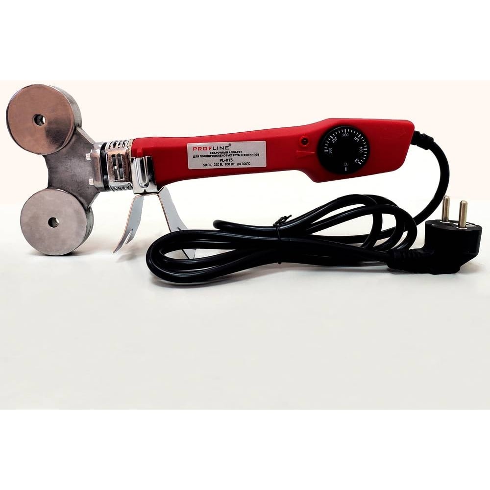 Сварочный аппарат для полипропиленовых труб модель PL-015. Предназначен для раструбной сварки напорных труб и фитингов из полипропилена, включая трубы со средним армирующим слоем из алюминия или стекловолокна. Сварка соединяет трубы с монтажными фитингами и муфтами различной формы, конфигурации. Допускается сварка труб и фитингов из полиэтилена. Нагревательная панель изготовлена из алюминия, обладающего высокой теплопроводимостью. Внутри установлен электронагреватель, управляемый термостатом (регулятором температуры). Сменные насадки изготовлены из алюминия с адгезионным (тефлоновым) покрытием. Пара насадок крепиться к нагревательной панели с помощью винтов. Сварочный аппарат оснащен встроенной раскладной подставкой, которая существенно упростит работу. С помощью термостата можно выбрать необходимую рабочую температуру, максимальное значение которой 300 градусов.