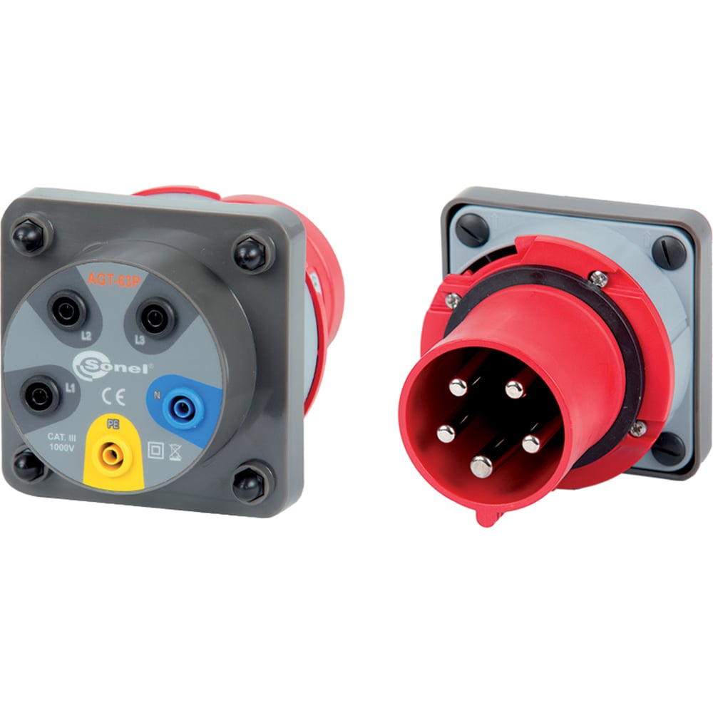 Адаптер AGT-63P SONEL WAADAAGT63P предназначен для подключения измерительных приборов к трёхфазным (L1-L2-L3-N-PE) промышленным силовым разъёмам оборудования током до 63 А.
