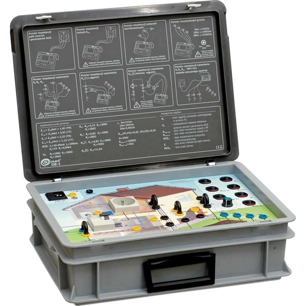 Стенд демонстрационный DB-1 SONEL WMRUDB1 является необходимой частью учебного процесса для проведения электрических измерений. Он находит применение в школах, на выставках посвящённых электроэнергетике и измерительным приборам, а также в центрах обучения. С его помощью можно имитировать следующие виды измерений с воспроизведением неисправности: Измерение полного сопротивления петли короткого замыкания в цепях L-N и L-PE для сетей TT или TN; Измерение параметров устройств защитного отключения (УЗО) типа AC; Измерение сопротивления изоляции в цепях L-N и L-PE; Измерение сопротивления контура заземления; Измерение сопротивления отдельного заземлителя входящего в контур заземления с использованием клещей; Измерение сопротивления заземлителей методом двух клещей; Измерение сопротивления заземлений с использованием приборов для измерений петли замыкания; Измерение удельного сопротивления грунта (5, 10 и 20 м); Измерение сопротивления соединений выравнивания потенциалов (металлосвязь); Измерение переменного напряжения.