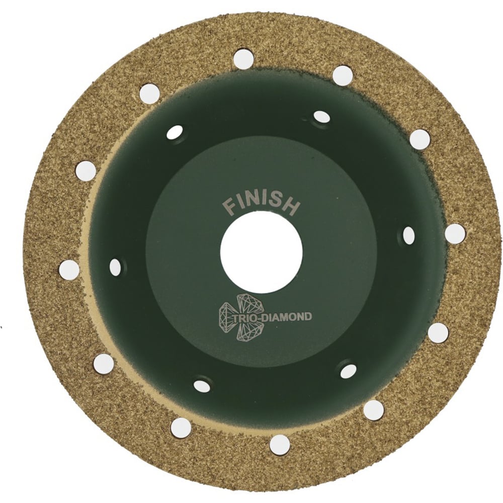 Чашка по дереву плоская Grand шаг 5 Finish 125 мм TRIO-DIAMOND 390005 Назначение: мягкая и твердая древесина, пластмасса, песчаник, силикатный кирпич, газобетон. Особенности: чашка имеет напайки из карбида вольфрама, плоскую форму рабочей кромки. Используется для грубых и деликатных шлифовальных работ, а также для декорирования поверхностей различных материалов.