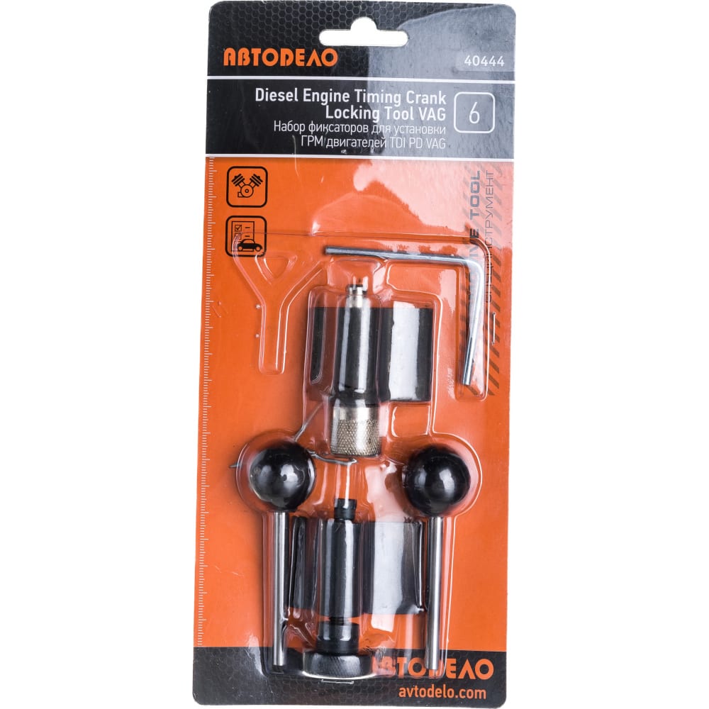 Набор фиксаторов валов АвтоDело VAG 40444 14751 позволяет заблокировать маховик коленчатого вала в процессе замены зубчатого ремня привода ГРМ. Подходит для профессионального использования в ремонтных мастерских и сервисных центрах, на станциях технического обслуживания. Набор можно применять для самостоятельного ремонта транспортных средств. Основные особенности: оптимален для автомобилей марки Volkswagen Jetta, Touran и Golf, Audi A4 и A6, Skoda Octavia II; предназначен для работы с двигателями TDi 1.2, 1.4, 1.6, 1.9, 2.0; в комплект входят фиксаторы шкива, натяжителя ремня, коленчатого вала.