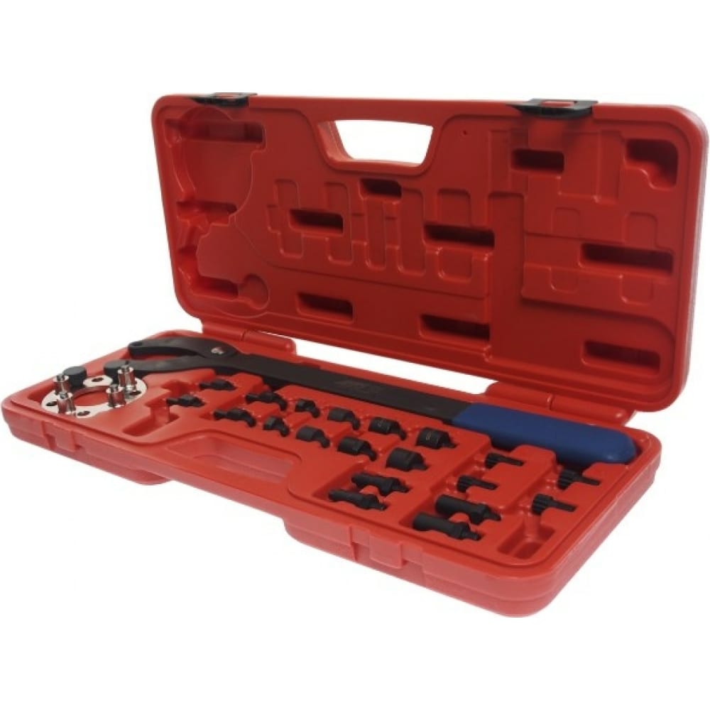 Фиксатор шкива распредвала VAG JTC 6639 поставляется в прочном кейсе, который не дает рабочим элементам потеряться в дороге или при хранении. Система ячеек исключает смешивание содержимого и тем самым упрощает эксплуатацию.