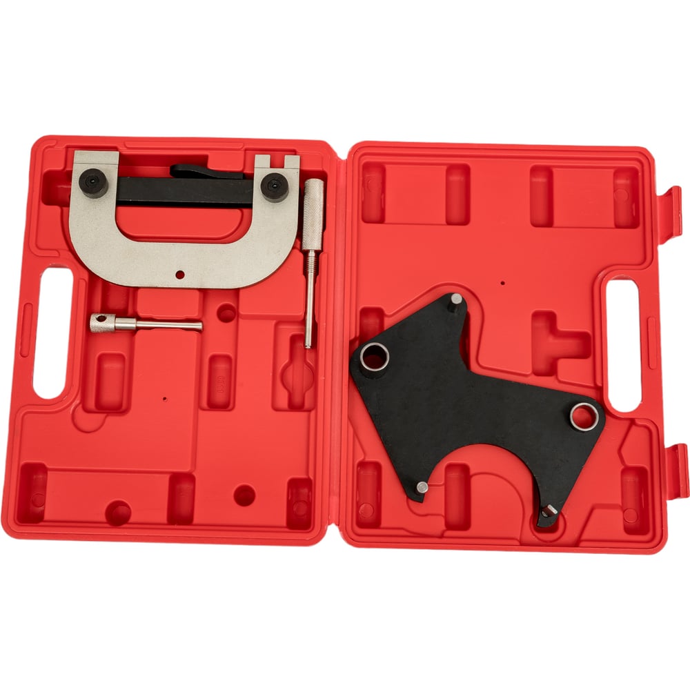 Набор фиксаторов для установки фаз ГРМ RENAULT, NISSAN с двигателями K4J, K4M, F4P, F4R используется для 16-клапанных двигателей. Комплект включает в себя необходимые компоненты для стопорения коленчатого и распределительного валов. Использование инструмента уменьшает время обслуживания двигателя. Набор поставляется в прочном пластиковом кейсе с двумя защелками.