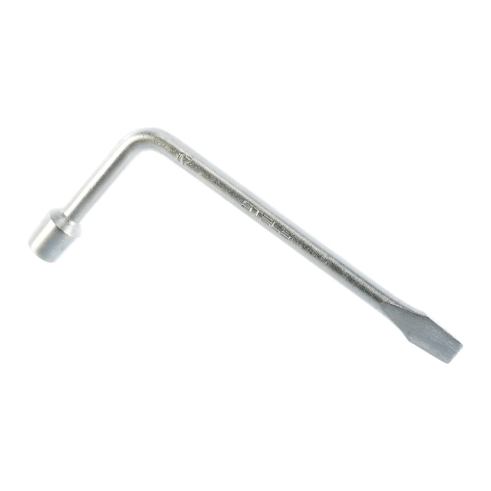 Баллонный ключ, 17 мм STELS 14210 используется для работ по монтажу и демонтажу автомобильных колес. Изделие имеет Г-образную форму, что увеличивает крутящий момент и экономит усилия пользователя. Несъемная торцевая головка с 6-гранным профилем располагается под углом к ручке ключа. Инструмент изготовлен из углеродистой стали, обладает повышенной прочностью и износоустойчивостью.