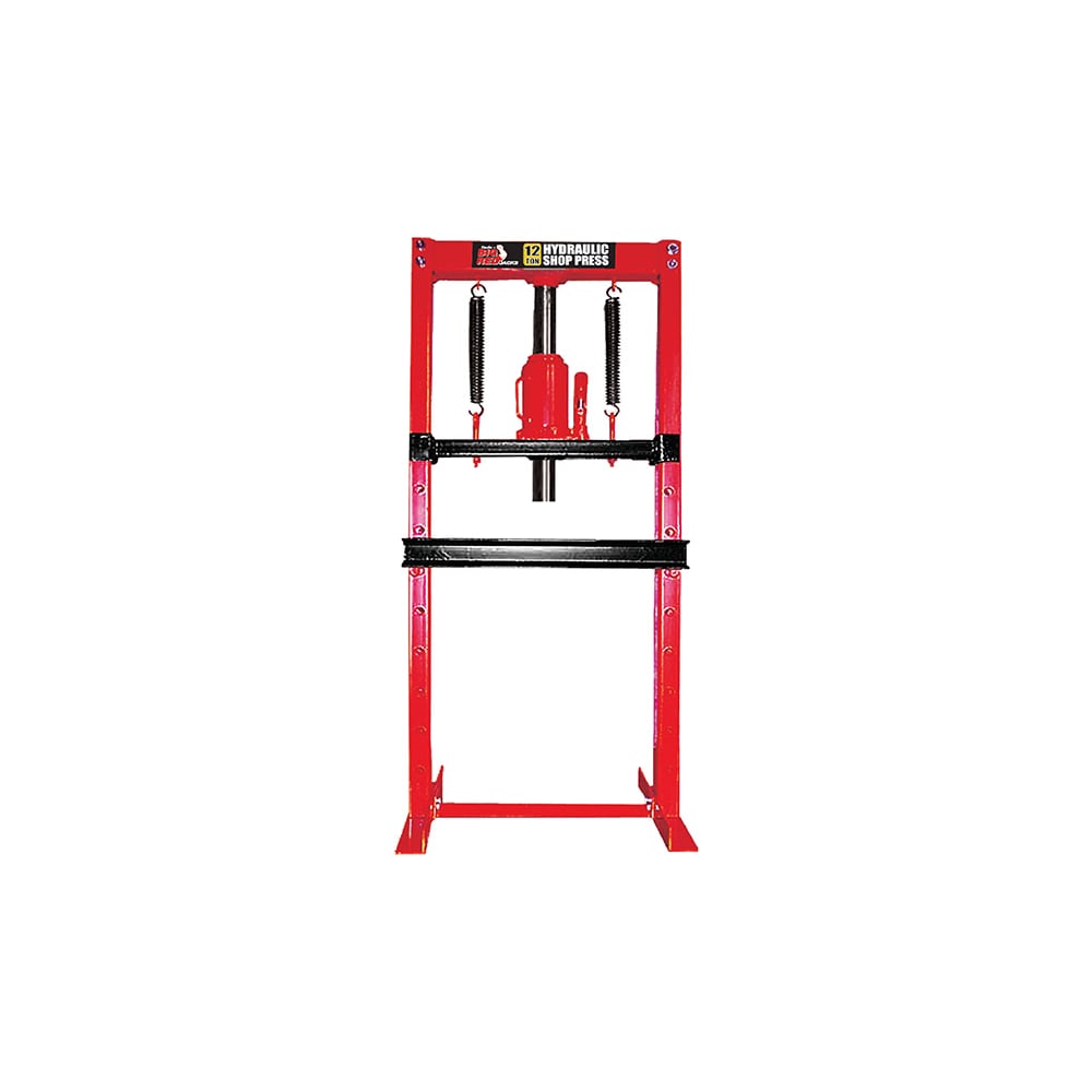 Гидравлический пресс TORIN TY12003 представляет собой высокую конструкцию для обработки заготовок с силой прижима 12 тонн. Модель широко используется в сфере промышленности и авторемонта. Рабочий диапазон установки составляет 0-610 мм. Для устойчивости пресса на рабочей площадке предусматриваются специальные поперечные планки основания. Станина агрегата отличается высоким уровнем прочности.