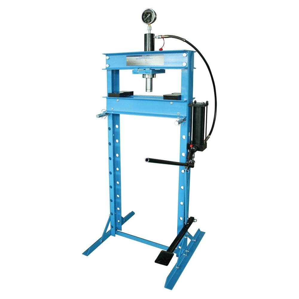 Гидравлический пресс 20т высокий UNITRAUM UNY20001 выполнен из высококачественного прочного металла, что гарантирует продолжительный срок службы даже при интенсивных нагрузках. Оборудование рекомендуется для применения на небольших производствах, в автомастерских. Предназначено для выполнения изгиба или сжатия различных материалов, проведения работ по запрессовке подшипников. Пресс приводится в действие при помощи рукояти, либо посредством ножной педали. Устойчивое положение модели обеспечивается благодаря поперечным пластинам основания. Отверстия стоек позволяют с легкостью менять высоту стола. Для контроля давления в конструкции предусмотрен манометр. Ход штока - 185 мм.