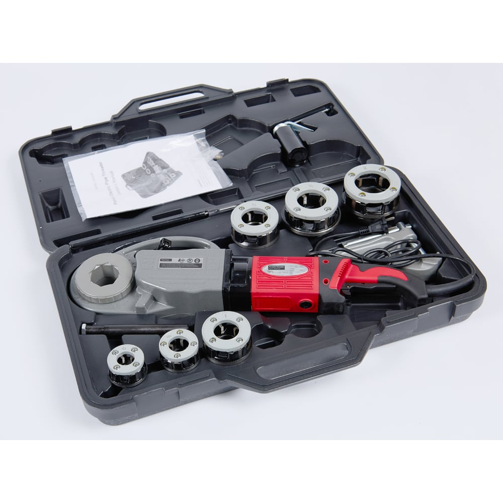 SQ30-2C - это легкий и мощный резьбонарезной клупп с электрическим приводом. Он предназначен для нарезания резьбы на трубах диаметром 1/2”-2” с помощью резьбонарезных головок 11-R. Идеальный легкий и портативный инструмент для специалистов по техническому обслуживанию и ремонту, для сантехников, а также специалистов других областей, которым приходится работать с трубами до 2 дюймов. Клупп SQ30-2C оснащен полным набором резьбонарезных головок 11-R в диапазоне 1/2”-2” и опорным кронштейном, поставляется в прочном футляре для переноски.