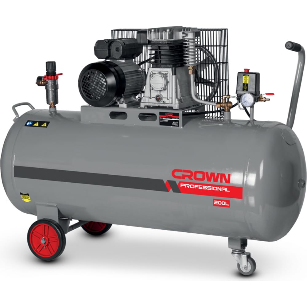 Компрессор с ременным приводом CROWN CT36032 используется для подключения двух инструментов одновременно. Имеется встроенная защита от перегрева при длительном использовании. Можно использовать на строительных площадках. Манометр и регулировка давления исключают повреждение устройства при нештатных ситуациях.