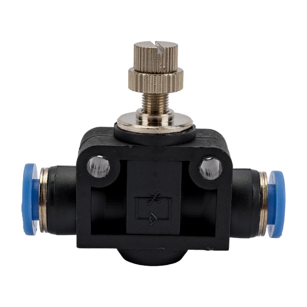 Фитинг-дроссель (пневмодроссель) цанговый 6 мм SHPI SCF 06 используется для ручной регулировки давления воздуха в магистрали путем изменения проходного сечения. Рабочее давление, бар: 10.