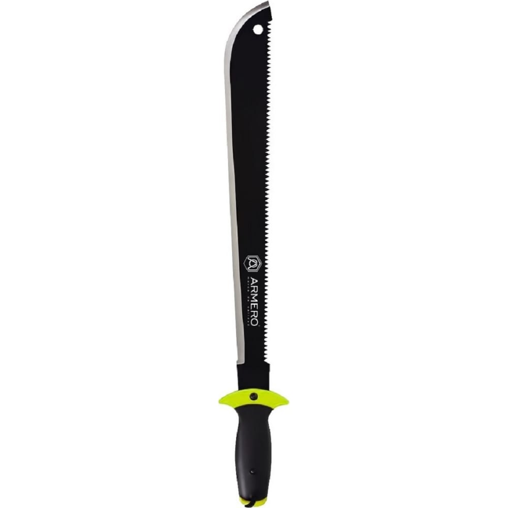 Пила мачете Armero 600мм A511/600 применяется для вырубки густых зарослей кустарника. Удобная эргономичная двухкомпонентная прорезиненная ручка. Двустороннее полотно. Толщина лезвия 2 мм.
