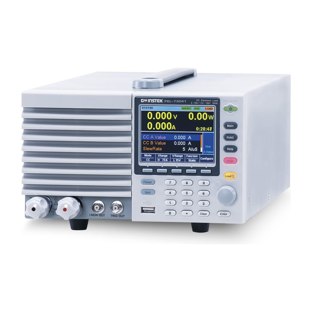 Нагрузка электронная программируемая PEL-73041Входные параметры нагрузки: постоянное напряжение до 150 В, ток 70 А, мощность 350 ВтРежимы работы: постоянное напряжение (CV), постоянный ток (CC), постоянное сопротивление (CR), постоянная мощность (CP)Динамический режим для CC и CR с регулируемой скоростью нарастания нагрузкиКомбинация режимов: CC+CV, CP+CV, CR+CVВозможность параллельного соединения нагрузок для увеличения мощности: максимально до 5 нагрузок PEL-73021/- 73021 или 1 нагрузка PEL-73211 + 4 модуля расширения (макс. до 9,45 кВт)Высокая точность и разрешениеРежим защиты от перегрева (OHP), перегрузки по току (ОСР), по напряжению (OVP), по мощности (OPP), от пониженного напряжения(UVP), от переполюсовки (REV)Функция контроля (управления параметрами нагрузки) - внешним сигналомИнтерфейсы USB ,RS-232, GO/NG (допусковый контроль)Опция: возможность монтажа в стойку 19” (стандарты EIA и JIS)Совместимость с LabView, VB, C, C++Три диапазон установки значений: низкий (L), средний (M), высокий (H)