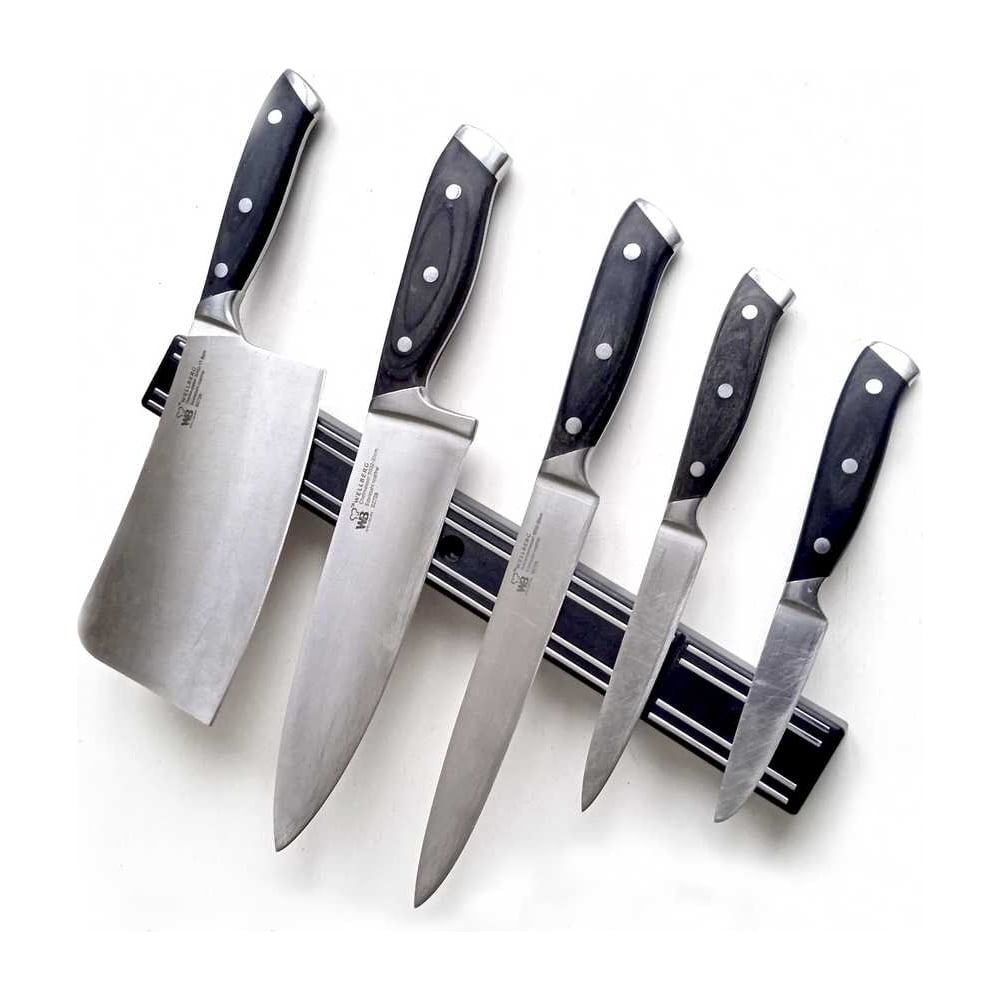 Усиленный магнитный держатель для инструмента и кухонных ножей Проф-Магнит, позволит вертикально закрепить действительно тяжелые инструменты и профессиональные ножи. В отличие от другим моделей, усиленный магнитный держатель, имеет увеличенную толщину Держатели для ножей легко крепятся на вертикальной поверхности, с помощью нескольких саморезов. Помимо ножей, можно закрепить данный магнитный держатель в Вашей рабочей зоне (гараж, кладовка, балкон и т.п.) и хранить на ней свой рабочий инструмент (отвертки, гаечные ключи, плоскогубцы и даже тяжелый топор). Не занимает много места. Все инструменты и ножи всегда под рукой и не занимают полезное пространство на столе или верстаке. Основные характеристики: Ширина (W) - 43 мм Длина (L) - 460 мм Высота (H) - 25 мм Расстояние между креплением (D) - 20 мм Корпус - пластмасса Цвет - черный Магнитный держатель для ножей поставляется с комплектующими для крепления на вертикальную поверхность.