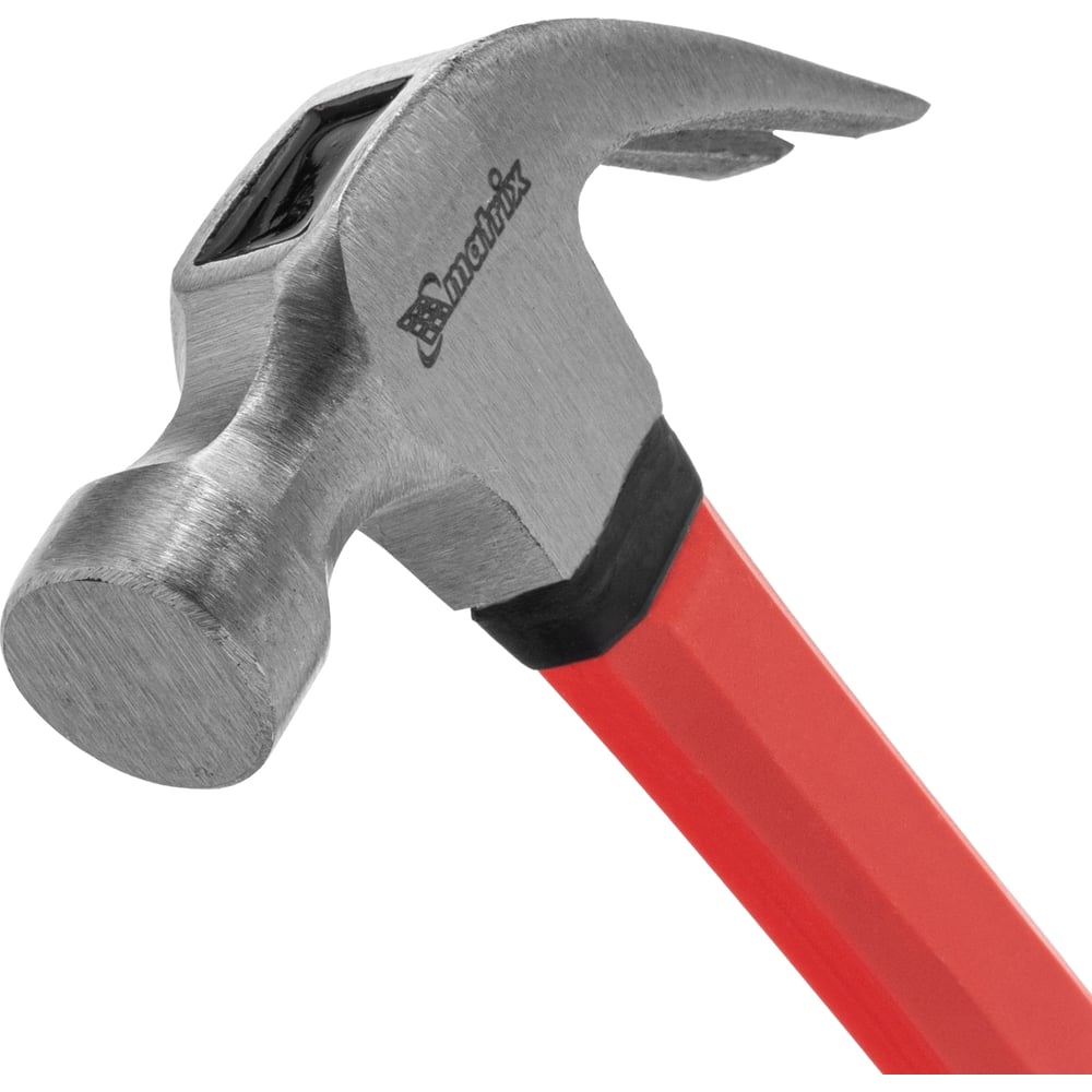 Молоток-гвоздодер Matrix 10450 длиной 330 мм, с головкой весом 450 г и диаметром бойка 27 мм, с фибергласовой обрезиненной рукояткой, — ударный инструмент, предназначенный для забивания гвоздей. Клиновидная прорезь позволяет подцеплять согнувшиеся гвозди для их выпрямления. Молоток будет полезен строителям, столярам, плотникам, сборщикам мебели, а также пригодится для домашнего использования.