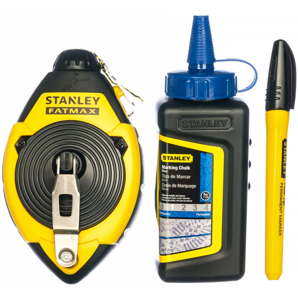 Набор из 3 предметов: шнуровка 30 м, краситель, маркер Stanley 0-47-681 служит для проведения разметочных работ, пригодится на строительно-ремонтной площадке. На корпусе, выполненном из АБС-пластика, предусмотрены прорезиненные накладки - для комфортного удержания приспособления. Рукоять, при помощи которой осуществляется сматывание шнура, складывается внутрь корпуса, что удобно для хранения и при транспортировке. Шнур на конце оснащен крючком из нержавеющей стали. На корпусе есть смотровое окошко - для контроля уровня мелового порошка.