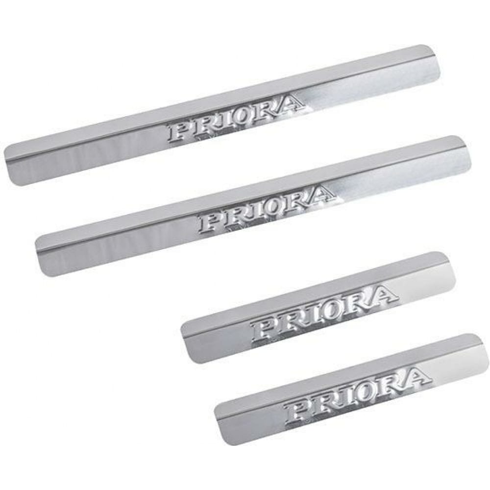 Накладки внутренних порогов DolleX ВАЗ-2170, 21104, 21124 PRIORA нержавеющая сталь к-т 4 шт. NPS-201 предназначены для защиты ЛКП на порогах автомобиля. Изделие плотно прилегает и не достает до двери. Качественное крепление исключает сползание порогов и риск повреждения отдельных элементов автомобиля.