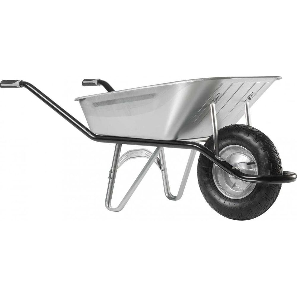 Тачка Haemmerlin CARGO EXELLIUM 100 MG GFR — одноколесная конструкция, оснащенная оцинкованным кузовом и надувным колесом с подшипником. Характеризуется отличной маневренностью, удобна в управлении. Применяется для перевозки любых строительных материалов, строительного или садового мусора и пр. Вмещается в себя до 100 л сыпучего груза и до 75 л жидкого, максимально допустимый вес для перевозки составляет 200 кг.Тачка Haemmerlin CARGO EXELLIUM 100 MG GFR отлично сконструирована: 70% веса груза при перевозке приходится на колесо. Кузов изготовлен из высокопрочной стали толщиной 0,9 мм, оцинкованная поверхность предохраняет изделие от агрессивных сред. Сбоку и снизу кузов усилен ребрами жесткости, изготовленными из окрашенной трубы диаметром 32 мм.