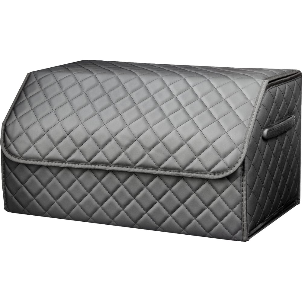 Органайзер в багажник выполнен из премиальной экокожи. Материал –влаго- и износостойкий, устойчив к перепадам температур, легко чистится. Размер автомобильного кофра Tamirat55×32 ×30 см. В органайзере 2 отделения (в комплекте поставляется перегородка на липучке, убрав которую можно получить одно большое отделение). Крышка бокса плотно фиксируется липучкой. Стенки бокса усилены картоном, что позволяет ему отлично держать форму. С каждой стороны органайзера в авто расположены прочные ручки для удобства переноски. Легко собирается и разбирается. Органайзер автомобильный поможет поддерживать порядок в автомобиле. можно разместить мелкие вещи, автохимию и другие авто принадлежности. Автомобильный бокс Tamirat не занимает много места в багажнике автомобиля, а благодаря лаконичному дизайну подойдет для любой марки машины. Автобокс Tamirat поможет поддерживать идеальный порядок в машине, а также сделает комфортным любое путешествие.
