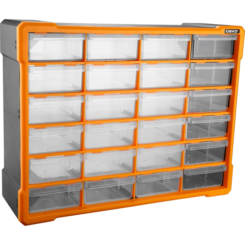 Система хранения DEKO Smart box 24 выполнена в форме вертикального кейса с выдвижными ящиками, служит для хранения и транспортировки крепежных изделий. Качественное исполнение гарантирует долгий срок службы ящика. Имеет 24 съемных секций. Система хранения выполнена из пластика. Размеры ячеек (см): 13.5х11х5.5