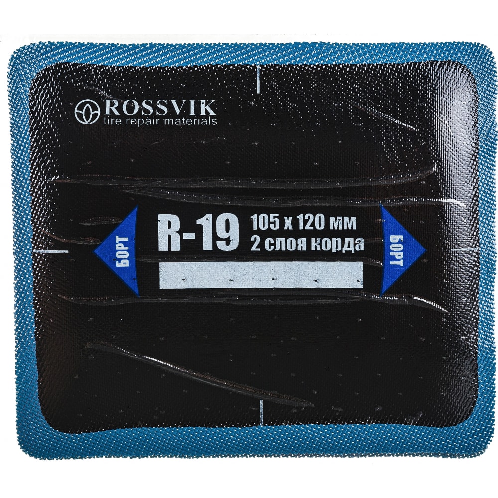 Пластыри R-19 (холодные) 105х120/2 сл., 10 шт. Размер 105х120 мм 10 шт. 2 слоя корда Радиальные пластыри ROSSVIK предназначены для ремонта всех типов радиальных бескамерных и камерных шин легковых автомобилей, грузового и пассажирского транспорта, сельскохозяйственной, карьерной и землеройной техники. Они обеспечивают надежный и долговечный ремонт в любой ремонтопригодной зоне шины.