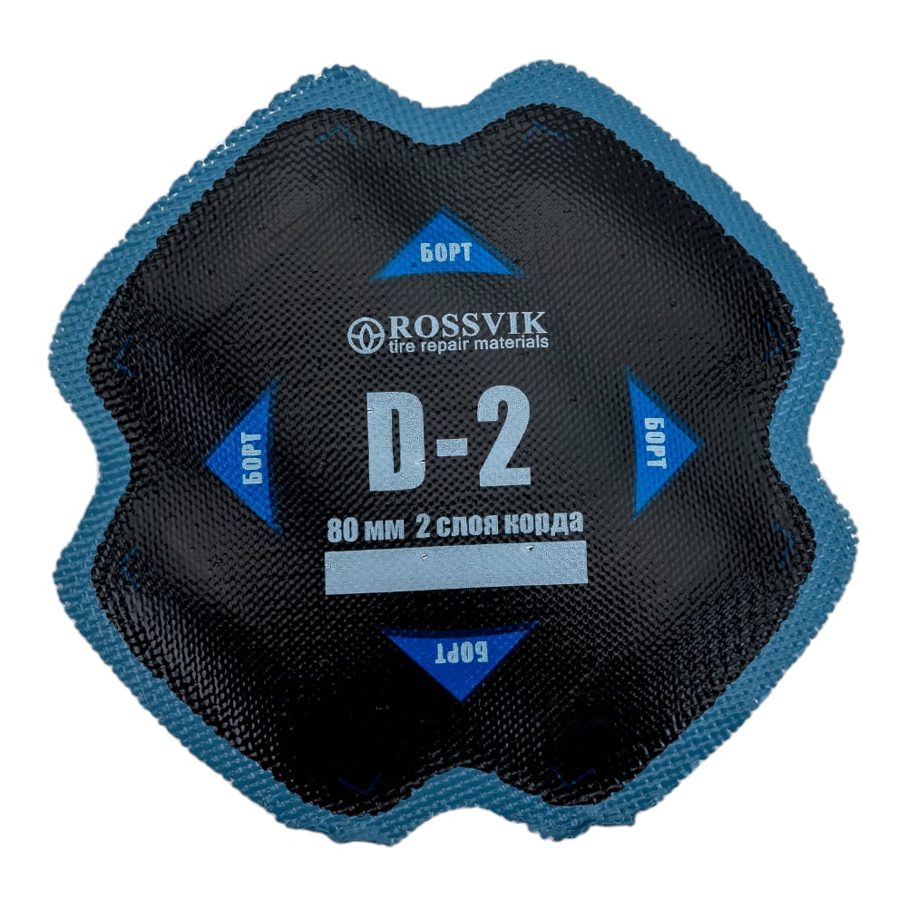 Пластыри D-2 (холодные) 80/2 сл., 10 шт. Размер 80 мм 10 шт. 2 слоя корда. Диагональные пластыри ROSSVIK применяются для ремонта всех типов камерных и бескамерных шин диагональной конструкции легковых, грузовых автомобилей; погрузчиков;карьерной и сельскохозяйственной техники. Могут устанавливаться на любом ремонтопригодном участке шины.
