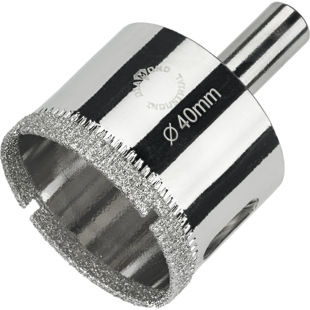 Коронка алмазная по керамике, плитке и стеклу 40 мм Diamond Industrial DIDCBC040 предназначена для сверления отверстий в керамической плитке любой твердости, керамике и стекле.Возможно использование по керамограниту (ограниченный объём).Коронка изготовлена из прочной углеродистой стали, выдерживающей значительные механические нагрузки, и покрыта коррозионностойким покрытием, защищающим её от ржавчины. В качестве режущего материала используется слой синтетического алмаза, нанесенного на режущую кромку коронки гальваническим методом.Отличительной особенностью алмазных коронок Diamond Industrial является увеличенное содержание (концентрация) режущего материала в алмазоносном слое, что существенно увеличивает ресурс коронки и удешевляет стоимость работы.Сверление алмазной коронкой обязательно производится на НИЗКИХ оборотах, в БЕЗУДАРНОМ режиме и с ОБЯЗАТЕЛЬНЫМ использованием водяного ОХЛАЖДЕНИЯ!В качестве инструмента для сверления рекомендуется использовать любой сверлильный инструмент с возможностью установки диапазона рабочих оборотов в 400-800 об/мин. и безударного режима - шуруповерт, дрель и т.д.Нарушение условий эксплуатации коронки или использование коронки для сверления материалов, для которых коронка не предназначена, ведет за собой экстремальный износ или поломку оснастки.Данная серия алмазных коронок производится без центровочного сверла, что особенно удобно, например, для сверления стекла. Установка центровочного сверла конструктивно не предусмотрена.