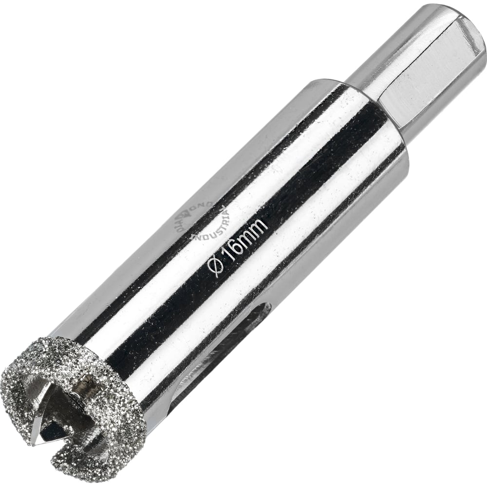 Коронка алмазная Diamond Industrial DIDCSC016 предназначена для сверления отверстий в керамической плитке любой твердости, керамограните и стекле.Коронка изготовлена из прочной стали и покрыта коррозионностойким покрытием.В качестве режущего материала используется слой синтетического алмаза, нанесенного на режущую кромку коронки гальваническим методом.Отличительной особенностью коронок Diamond Industrial является увеличенное содержание (концентрация) режущего материала в алмазоносном слое, что существенно увеличивает ресурс коронки и удешевляет стоимость работы.Сверление алмазной коронкой обязательно производится на НИЗКИХ оборотах, в БЕЗУДАРНОМ режиме и с ОБЯЗАТЕЛЬНЫМ использованием водяного ОХЛАЖДЕНИЯ!Чистка внутренней части сверла (трубки) от шлама, образующегося в процессе работы ОБЯЗАТЕЛЬНА! Сверление с забитой центральной частью запрещено!В качестве инструмента для сверления рекомендуется использовать любой сверлильный инструмент с возможностью установки диапазона рабочих оборотов в 400-800 об/мин. и безударного режима - шуруповерт, дрель и т.д.Нарушение условий эксплуатации коронки или использование коронки для сверления материалов, для которых коронка не предназначена, ведет за собой экстремальный износ или поломку оснасткиДанная серия коронок производится с центровочным сверлом, что обеспечивает максимальное удобство при засверливании.Для работы с шаблонами, кондукторами - предусмотрен съём центровочного сверла, с помощью шестигранного ключа, входящего в комплект.