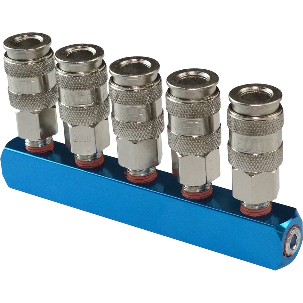 Разветвитель пневматический WIEDERKRAFT WDK-85MX предназначен для одновременного подключения до пяти пневмоинструментов к одной пневмосистеме. Оснащен входом со внутренней резьбой F1/4 и пятью выходами с разъемами типа «мама» (рапид EURO). Изготовлен из прочной стали, отличается надежностью и герметичностью.Характеристики:Вид: разветвительВходное соединение: внутренняя резьба 1/4"Выходное соединение: рапид EURO (мама)Количество выходов: 5Материал: сталь