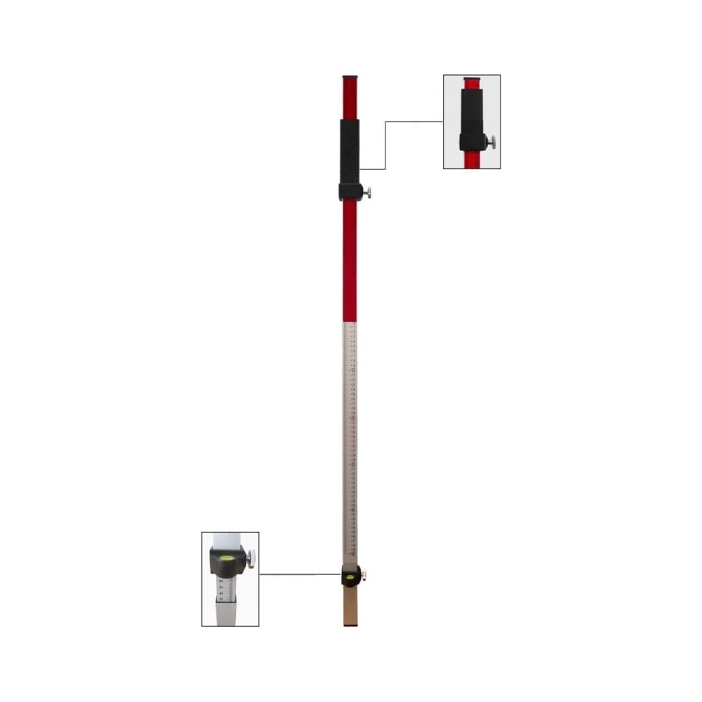 Нивелирная рейка ADA Laser STAFF применяется совместно с лазерными ротационными нивелирами и с построителями плоскостей. Данная рейка является аналогом geo-Fennel TN-20K. Используют при выравнивании полов, что значительно облегчает работу. Данная рейка разделена на две секции. На нижней секции изображены цифры (общая высота), на верхней — нулевая отметка, а также отрицательная шкала красного цвета и положительная шкала, позволяющая измерить несоответствие с базовой точкой до миллиметров. Деление единиц измерения производится в сантиметрах ±50. В комплекте вместе с лазерным нивелиром идет мягкая сумка-чехол. Она делает хранение и переноску устройства наиболее комфортным и безопасным. Также есть пузырьковый уровень, который позволяет наиболее точно установить нивелирную рейку. Основные параметры: Вес - 0.9 кг; Длина - 2.4 м.