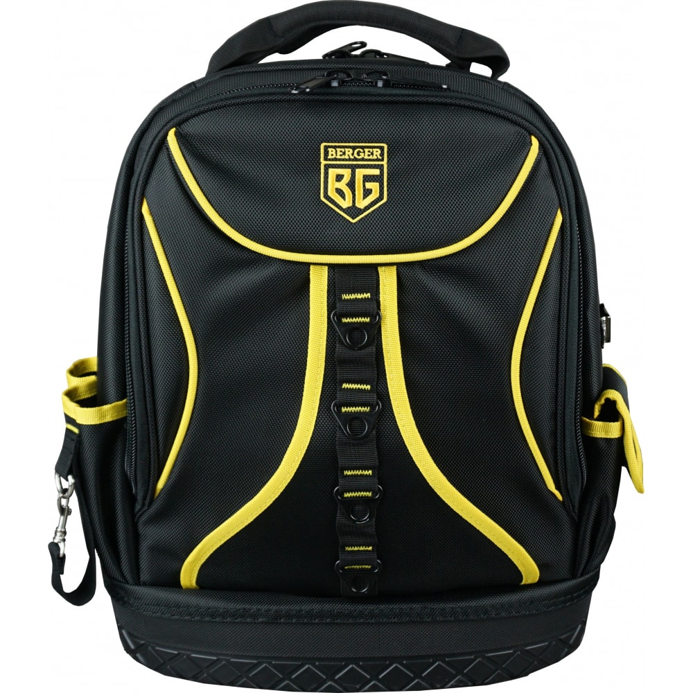 Рюкзак для инструментов Berger BG БОГЕН BG1199 с жесткими дном и спиной защищает инструмент от механических повреждений. Полиэфирное водоотталкивающее волокно, из которого он изготовлен, отличается высокой прочностью и износостойкостью. Наличие множества карманов создает возможность сортировать инструмент по необходимости. Мягкие плечевые ремни и поясной ремень создают комфорт при переноске. Модель имеет 57 карманов. Легко выдерживает вес 30 кг.