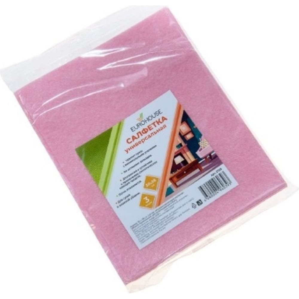 Салфетка из вискозы EUROHOUSE 3 шт., 30х38 см, 65% вискоза, 35% полиэстер 3729 применяется в быту для влажной и сухой уборки. Не царапает поверхности, хорошо впитывает воду. В состав добавляется полиэстер для придания салфетке большей прочности.