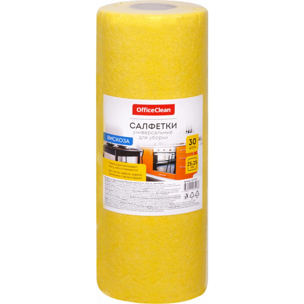 Салфетки для уборки OfficeClean 25х25 см, вискоза, желтые, 30 шт., в рулоне 287978 предназначены для удаления пыли, грязи и жира с различных поверхностей: кухонных приборов, стекла, мебели, кафеля. Используется как во влажном, так и в сухом виде. Отличная впитываемость. Эффективно удаляет любые загрязнения без бытовой химии, не оставляет разводов. Структура ткани идеально задерживает пыль, вбирая в себя грязные частицы (благодаря статическому электричеству). Имеет длительный срок службы.
