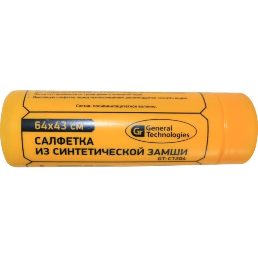 Замшевая салфетка в тубе General Technologies большая 64х43 см GT-CT204 применяется для уборки салона, кузова, панели, стекол и зеркал. Для комфортного использования рекомендуется держать во влажном состоянии. Высохшую салфетку рекомендуется перед использованием намочить. Материал: замша синтетическая. Состав: поливинилацетатное волокно. Назначение: Чистка, мойка и удаление влаги с различных поверхностей. Не оставляет разводов и ворсинок. Легко отстирывается от грязи даже в холодной воде.