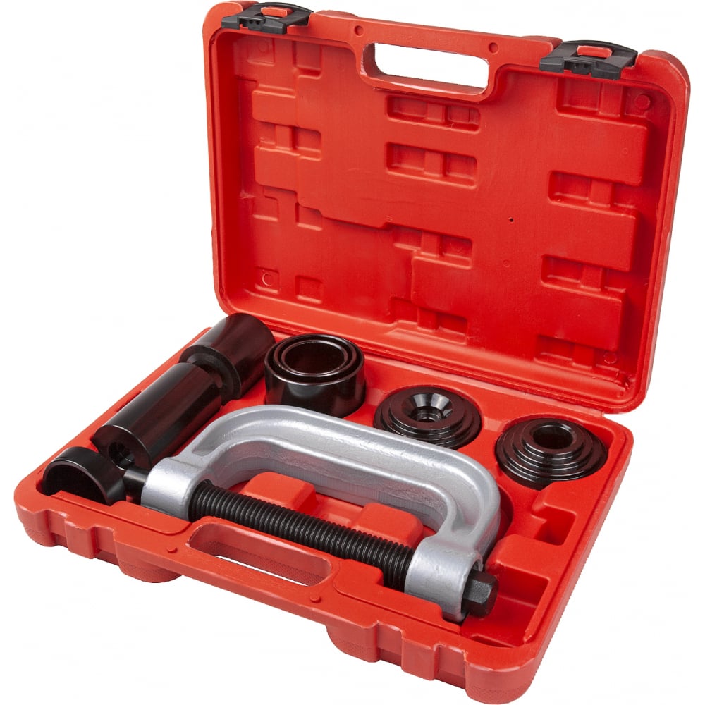 Набор для демонтажа/монтажа шаровых опор 10 предметов AV Steel AV-922012 представляет собой прочную раму с надежным винтом и шестигранником для вращения, а также комплект оправок. Универсальные размеры инструмента позволяют эффективно работать в любых условиях.