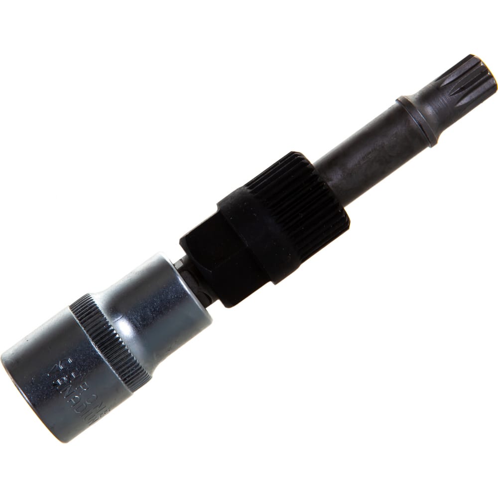 Ключ для шкива генератора Vertul, M10 VR50355A специализированное приспособление для обслуживания генератора. Находит широкое применение в сервисных центрах, на СТО и в других различных мастерских по ремонту автомобилей. Ключ используют для снятия и крепления крепежных болтов генератора на двигателях большинства европейских марок авто. Головка с битой-вставкой под 12-ти лучевой шлиц М10, L=110 мм совместно с насадкой; входит в данный комплект. Насадка со сквозным отверстием под биту вставку на внешней стороне (диаметр 19,5 мм), имеет накатку в 33 зубца и привод под гаечный ключ 17 мм. Оба компонента могут использоваться отдельно друг от друга, как самостоятельный инструмент. Размер посадочного квадрата - 1/2".