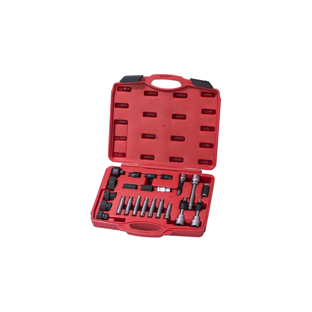Набор съемников шкивов генератора, 24 предмета ROSSVIK ST077 используется для оперативного и безопасного демонтажа муфты свободного хода при замене фрикционного кольца. Набор упакован в пластиковый кейс, который обеспечивает удобность транспортировки.
