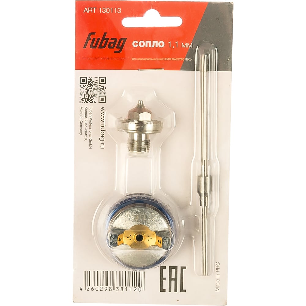 Сопло FUBAG 130113 используется при работе краскопультом FUBAG MAESTRO G600. Сопло предназначено для распыления лакокрасочных материалов ровным слоем на поверхность. В комплекте: игла, головка, сопло. Диаметр сопла — 1.1 мм.