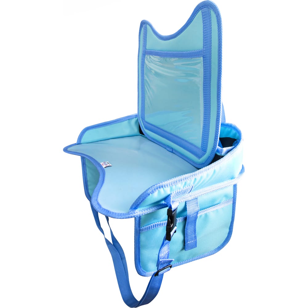 Столик для детского автокресла с подставкой BELON familia цвет бирюзовый СДК-2-БИРЮЗОВЫЙ станет удобным помощником родителям в путешествии, длительной поездке и даже в пробках. Со столиком станет проще покормить малыша, развлечь тетрадью с карандашами или же просто поставить планшет. Высокие бортики столика позволяют ничего не пролить или уронить. Подставка для планшета или телефона позволит смотреть малышу мультфильмы не уронив гаджет. Перегородка на липах позволяет поставить бутылочку с водой. При необходимости перегородка снимается и позволяет увеличить пространство для игры, рисования, лепки или для контейнера с перекусом. Столешница легко отмывается благодаря покрытию тканью пвх. Удобные кармашки по бокам позволят складывать необходимые мелочи для малыша такие как: салфетки, маленькие игрушки или канцелярские принадлежности. Прикрепить его можно с помощью удобных ремней с фиксаторами.