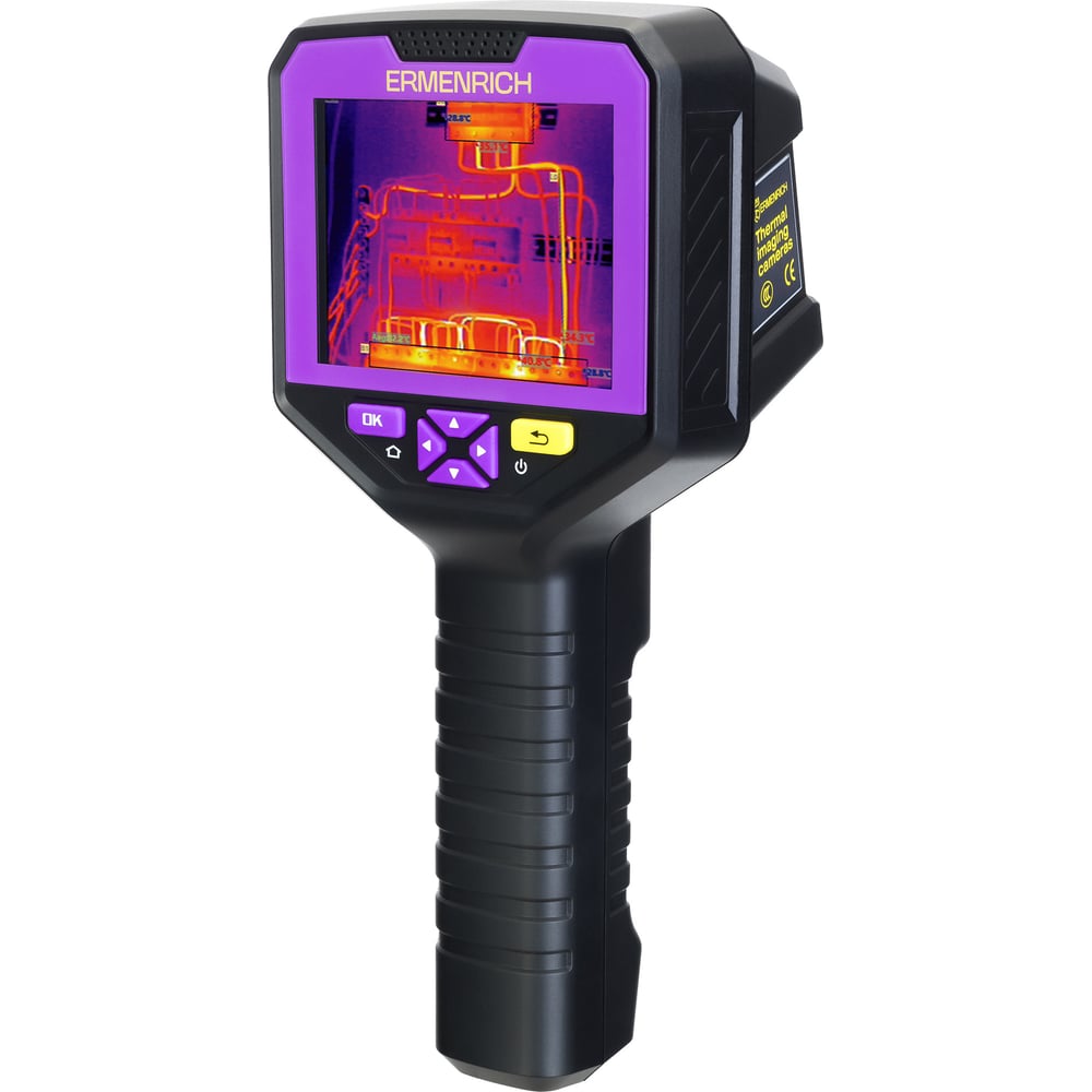 Ermenrich Seek TV90 – строительный тепловизор, который применяется для контроля работы и исправности промышленного, электрического и отопительного оборудования, при монтаже обогревательных систем, в ремонте автомобилей. Он также может использоваться в строительстве для поиска тепловых утечек в фундаментах и фасадах.В основе прибора – тепловизионный датчик 256x192 пикс и камера видимого света. Диапазон измеряемых температур – от –20 до +400 °С, шаг измерения – 0,1 градуса. Высокая точность измерения – погрешность составляет не более 2 °С (при температуре до 100 °С).Изображение демонстрируется в выбранном режиме: видимый свет, инфракрасный режим, слияние краев и наложение инфракрасного и видимого света. Присутствует функция «картинка в картинке».Цветной экран позволяет выбрать один из 8 цветовых режимов. Разрешение экрана – 240x320 пикселей, диагональ – 3,5 дюйма. Есть возможность фиксировать изображение на фото или видео, записи сохраняются на внутреннюю память объемом 8 ГБ.Для питания тепловизора используется литиевая батарея, одного заряда которой достаточно для 4 часов непрерывной работы. Автоматическое отключение помогает экономить энергию, а индикатор уровня заряда – своевременно заряжать прибор.