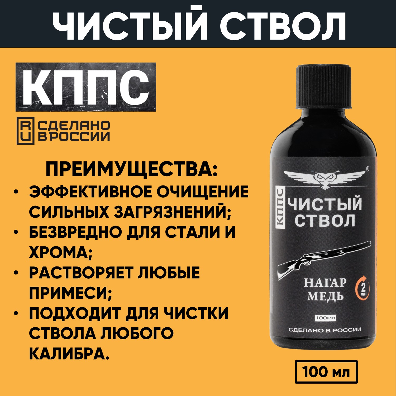 Технические характеристики Чистый ствол КППС (100мл), Очиститель канала ствола от сильных загрязнений