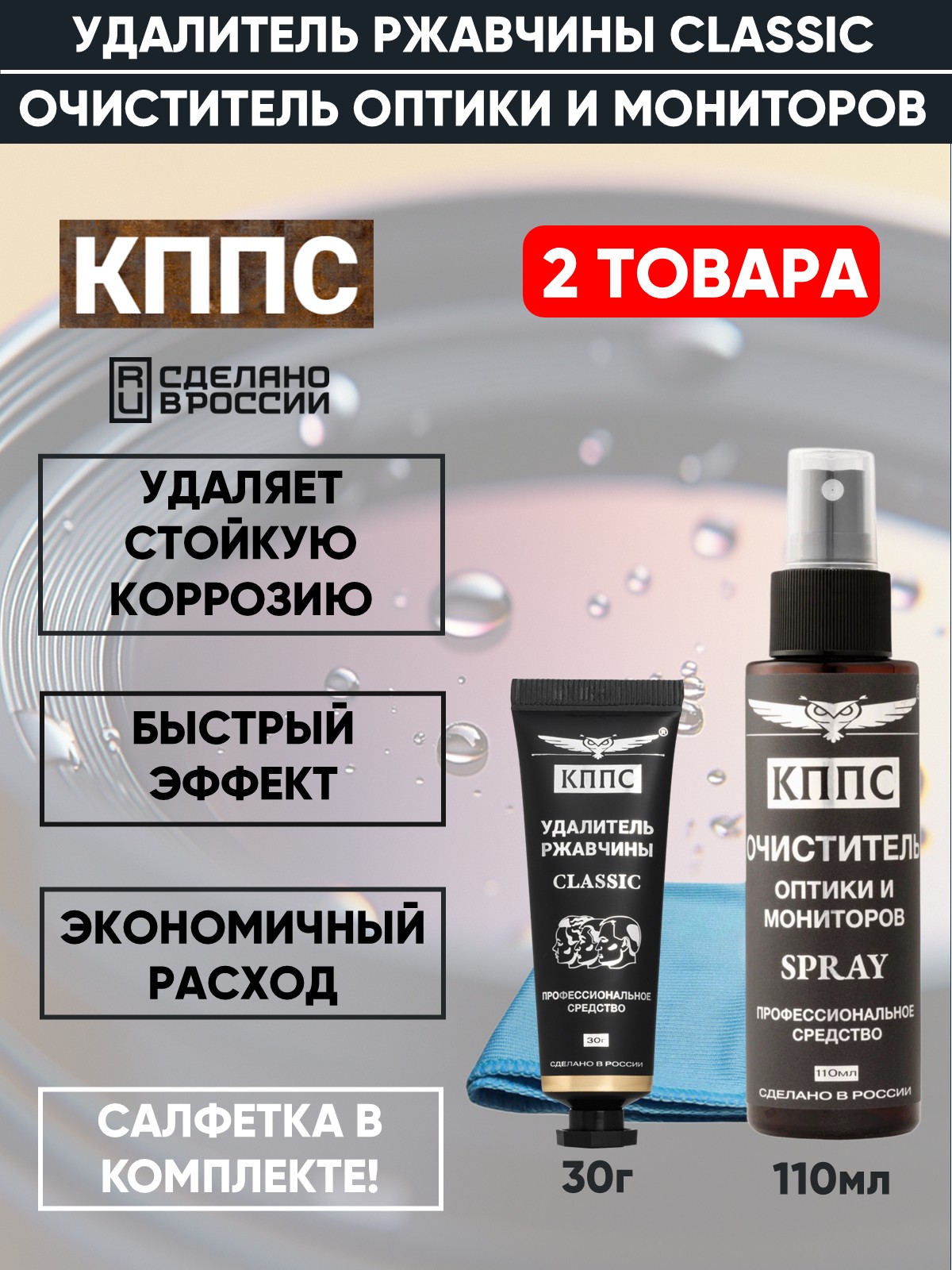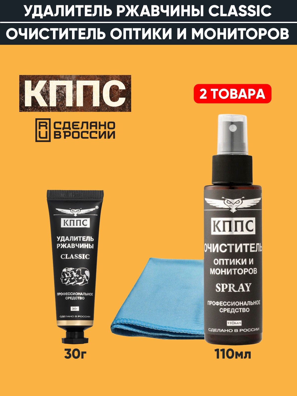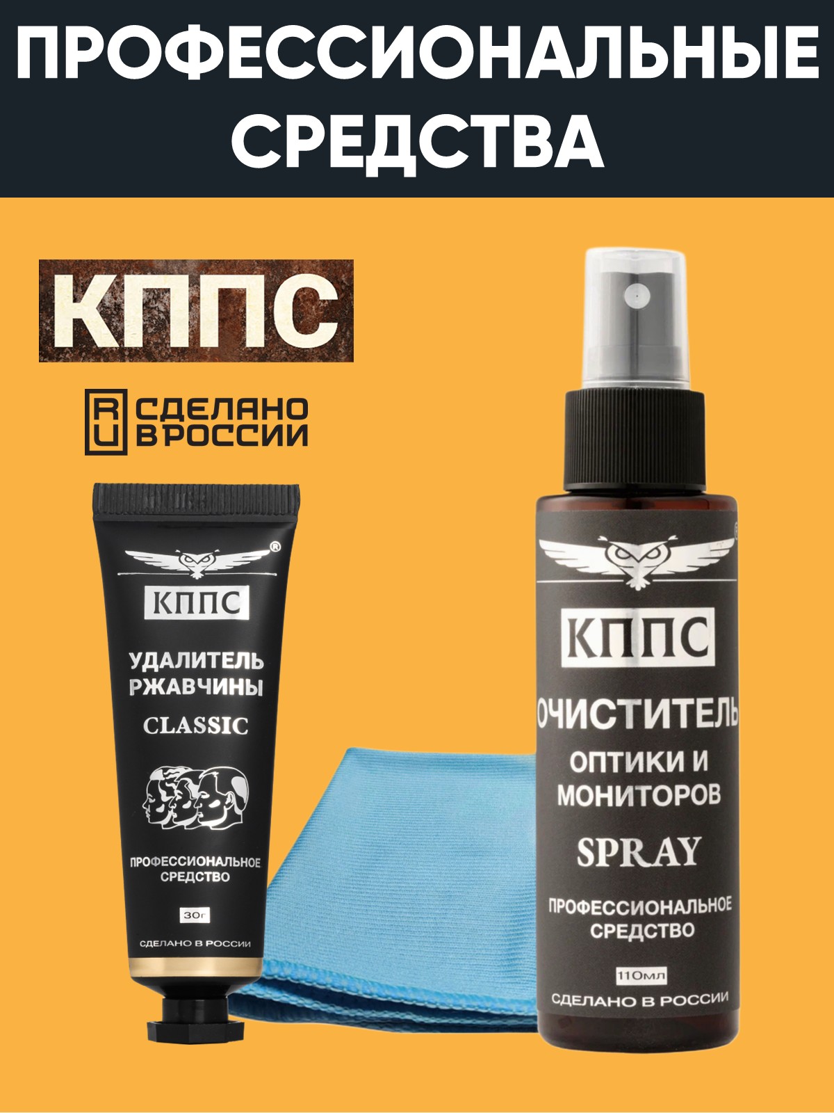 Технические характеристики Очиститель оптики и мониторов КППС SPRAY (110мл) + Удалитель ржавчины КППС CLASSIC (30г)