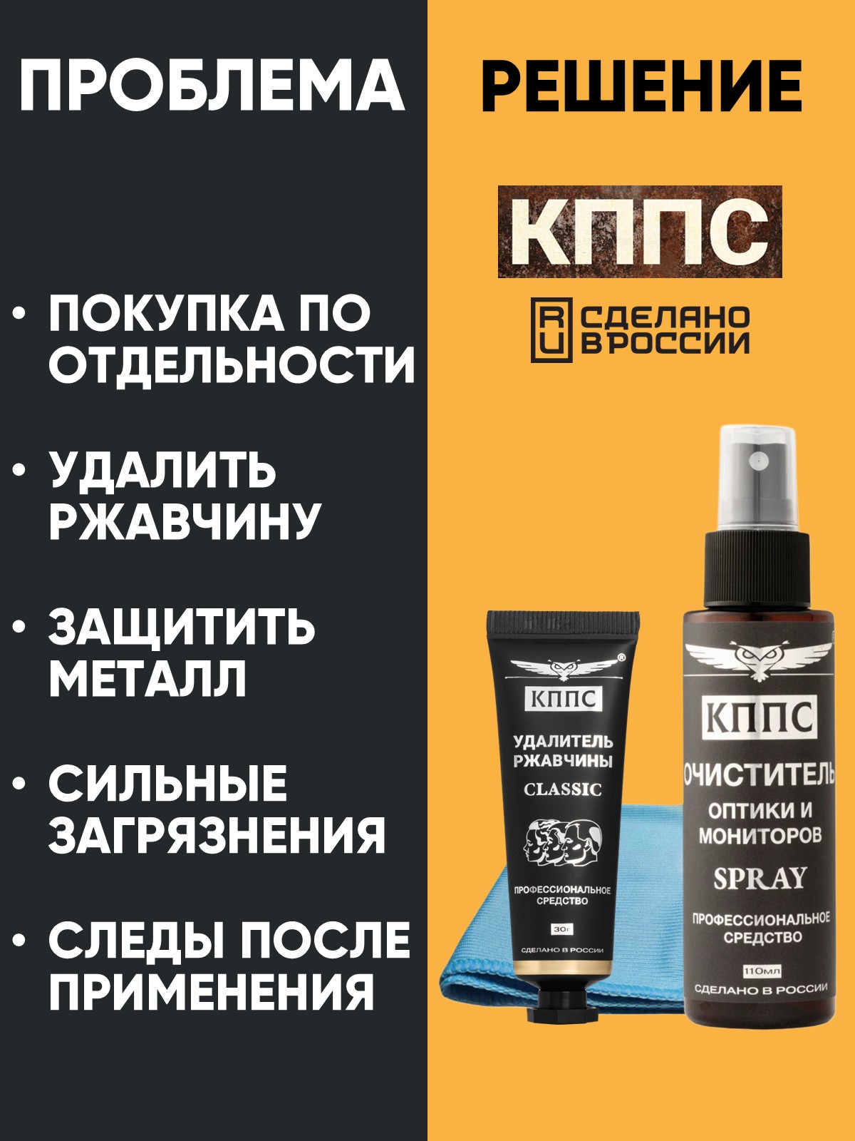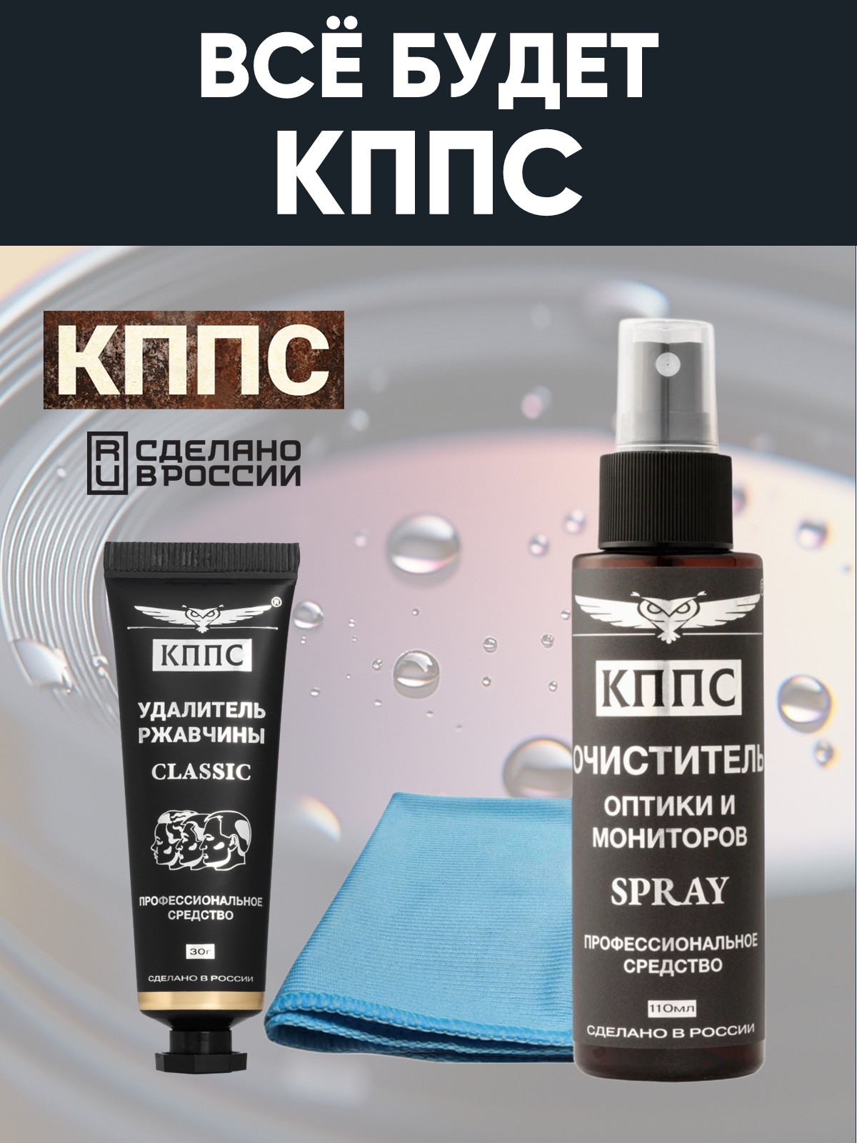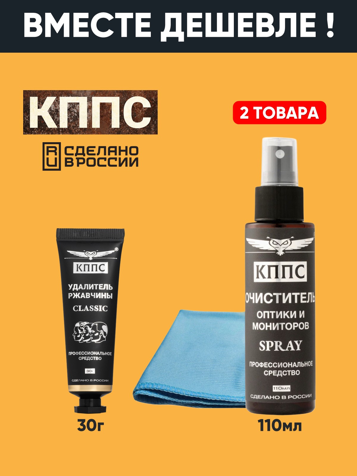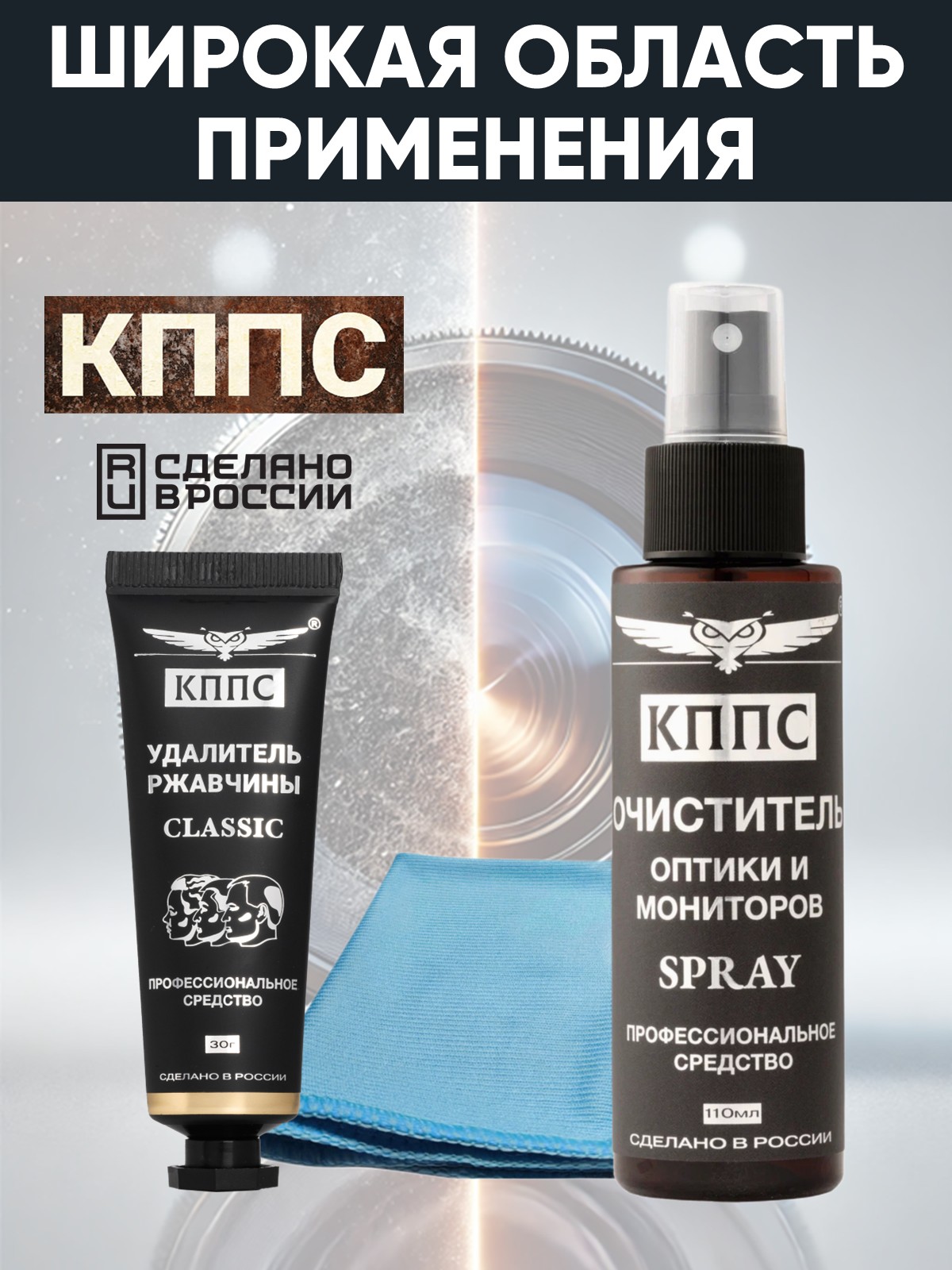 Технические характеристики Очиститель оптики и мониторов КППС SPRAY (110мл) + Удалитель ржавчины КППС CLASSIC (30г)