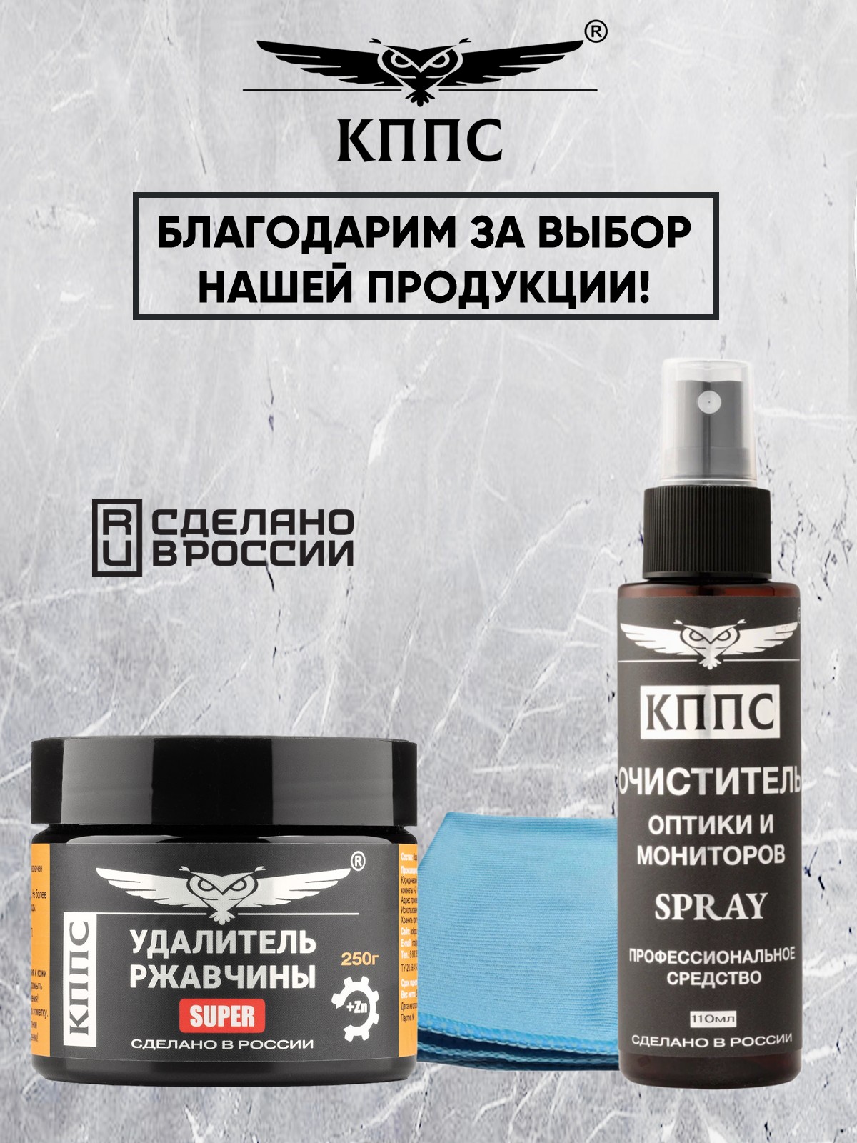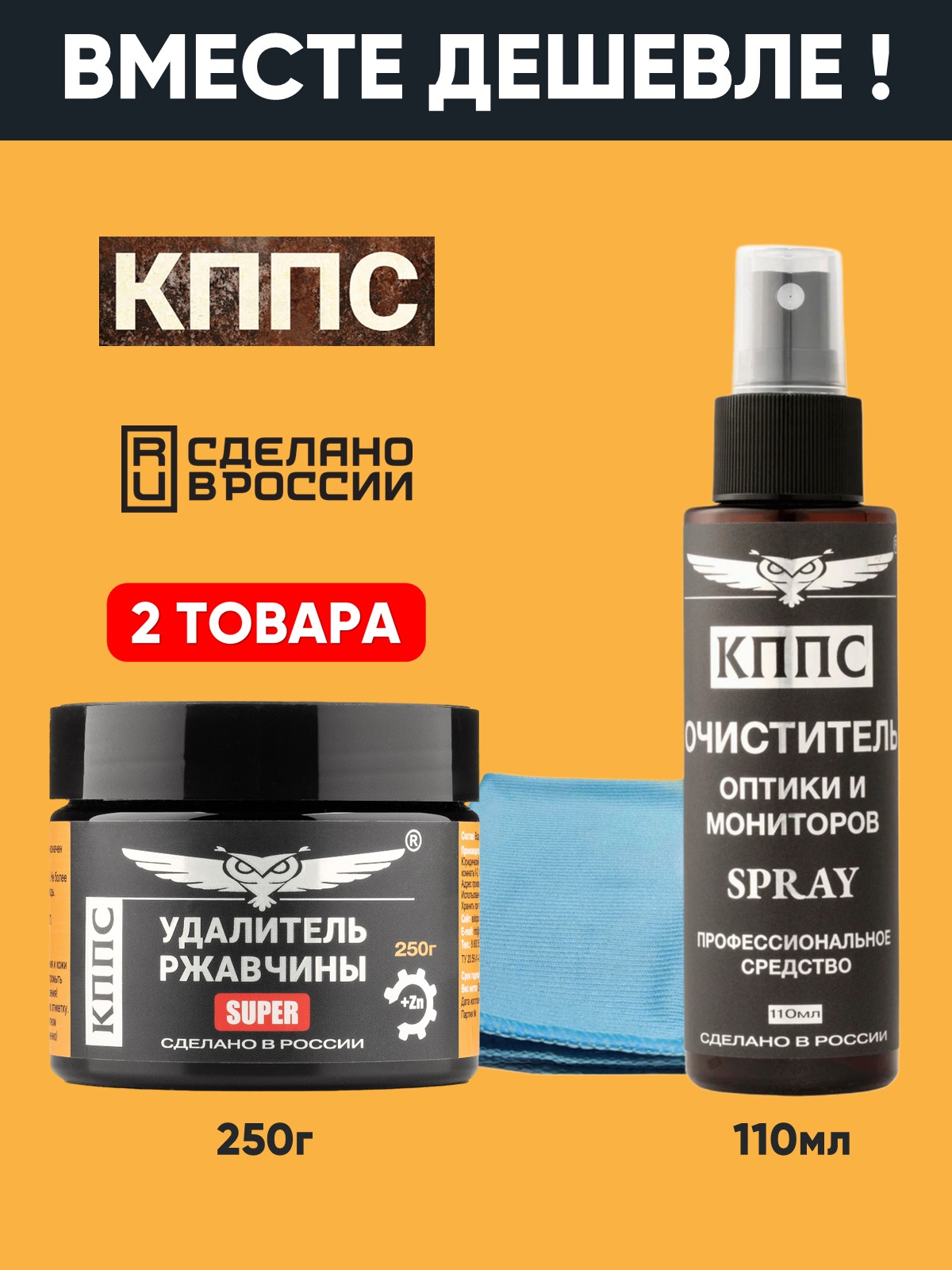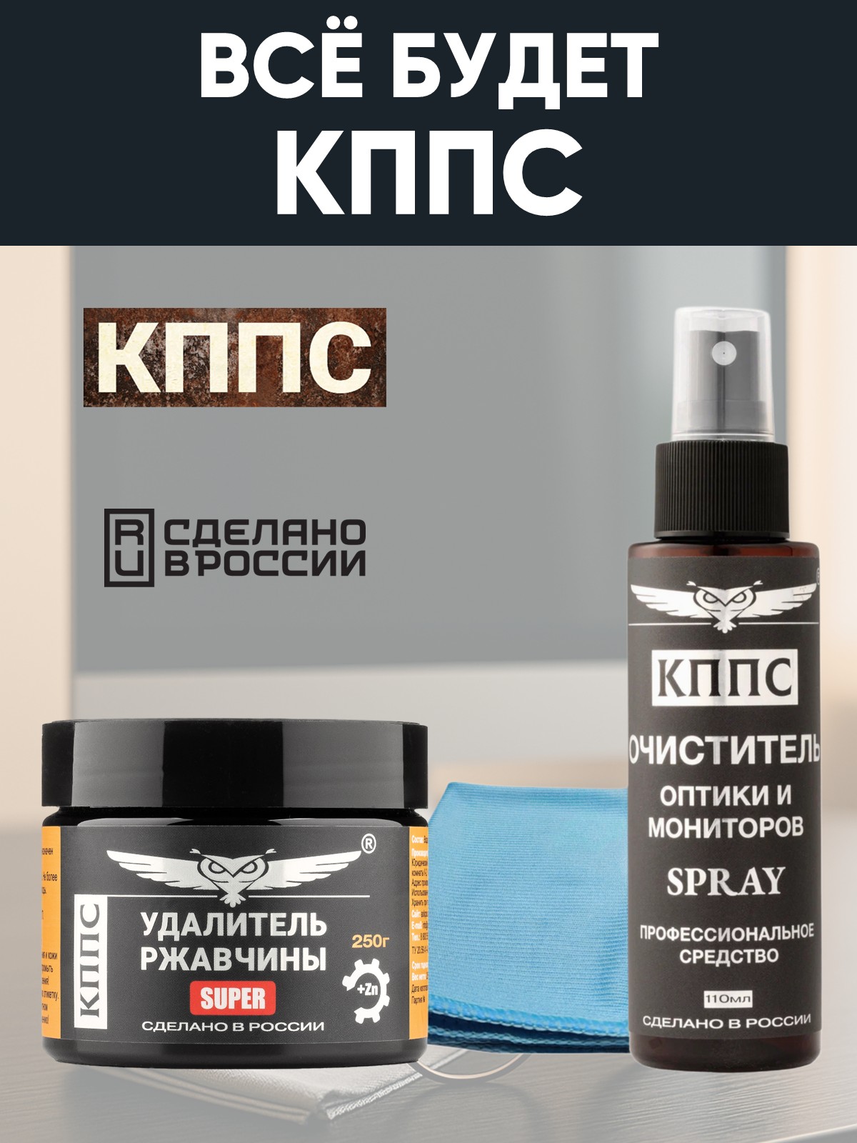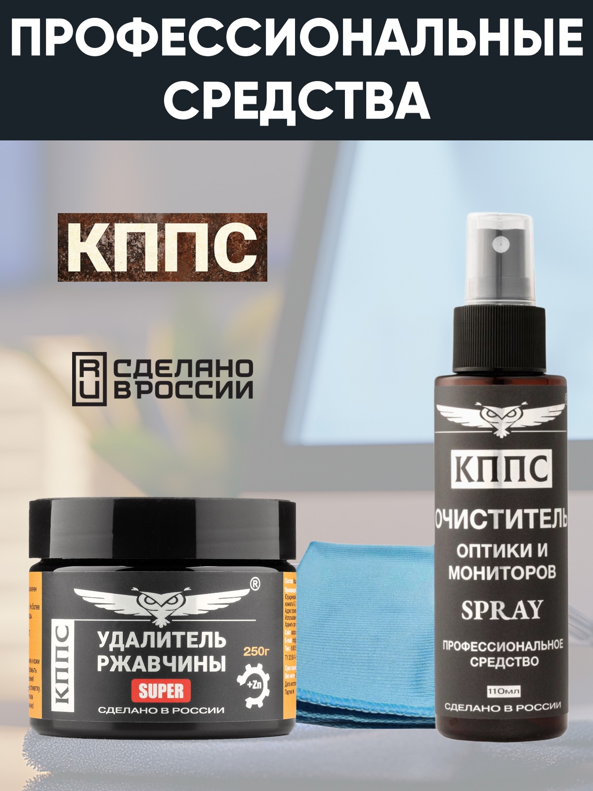 Очиститель оптики и мониторов КППС SPRAY (110мл) + Удалитель ржавчины КППС SUPER (250г)