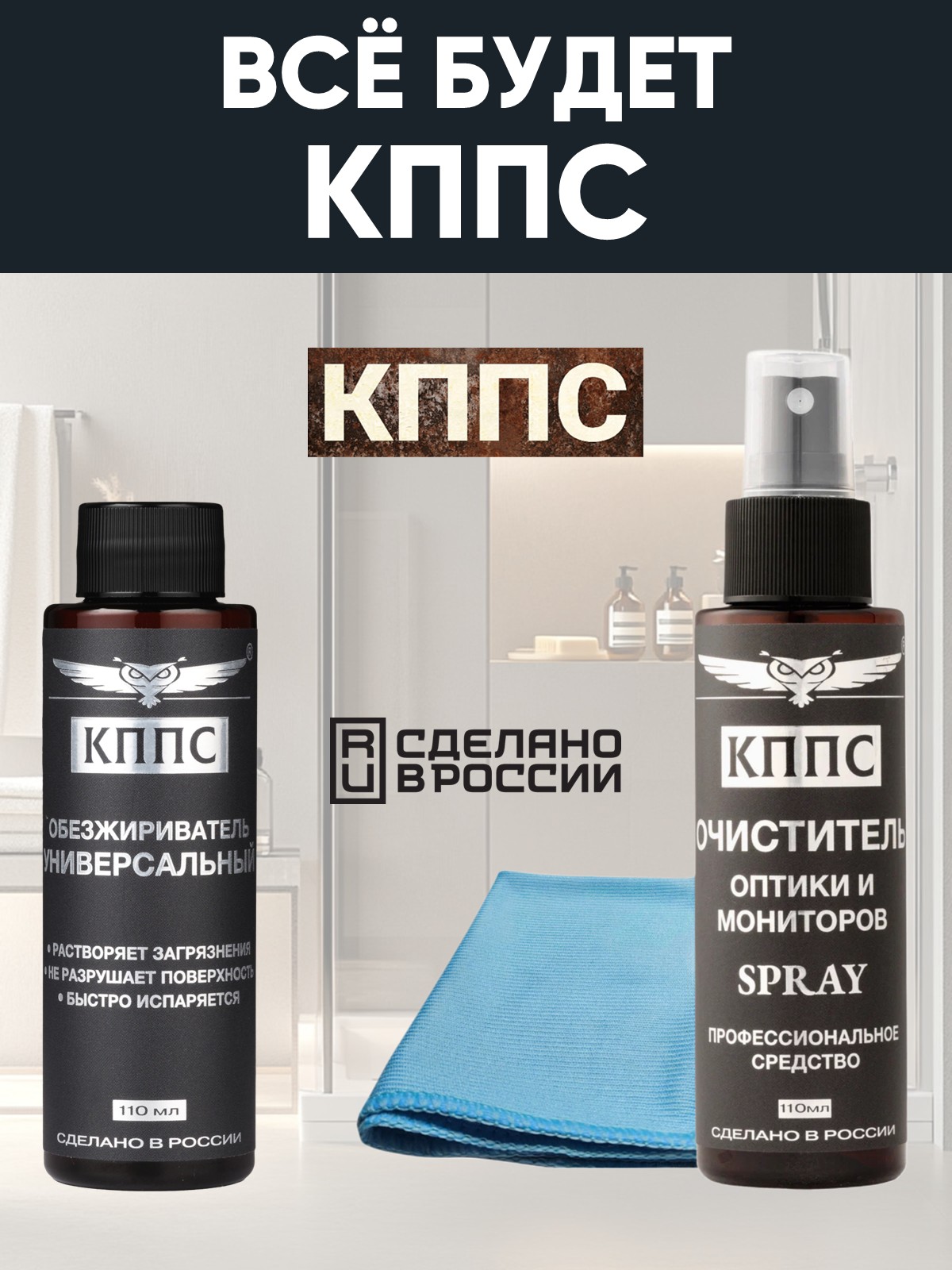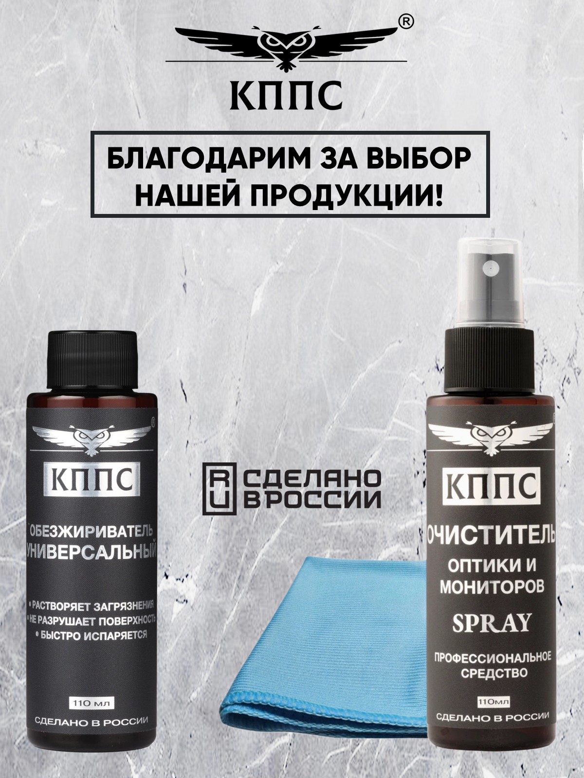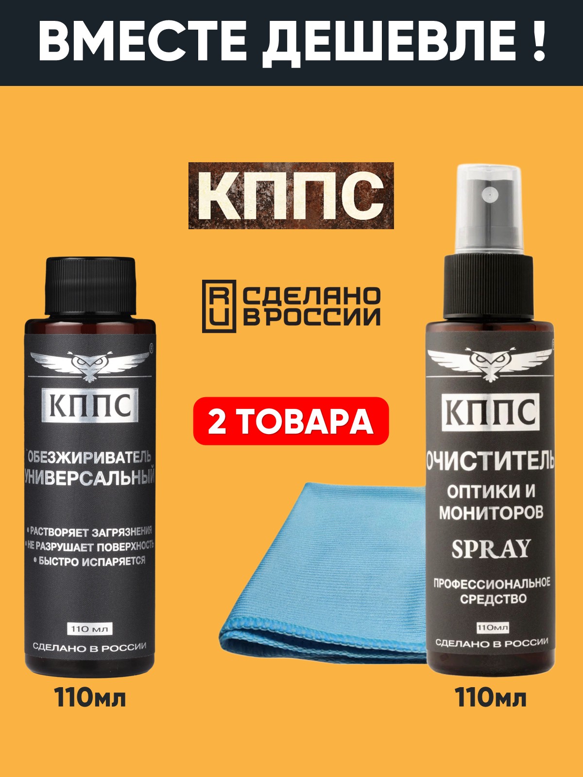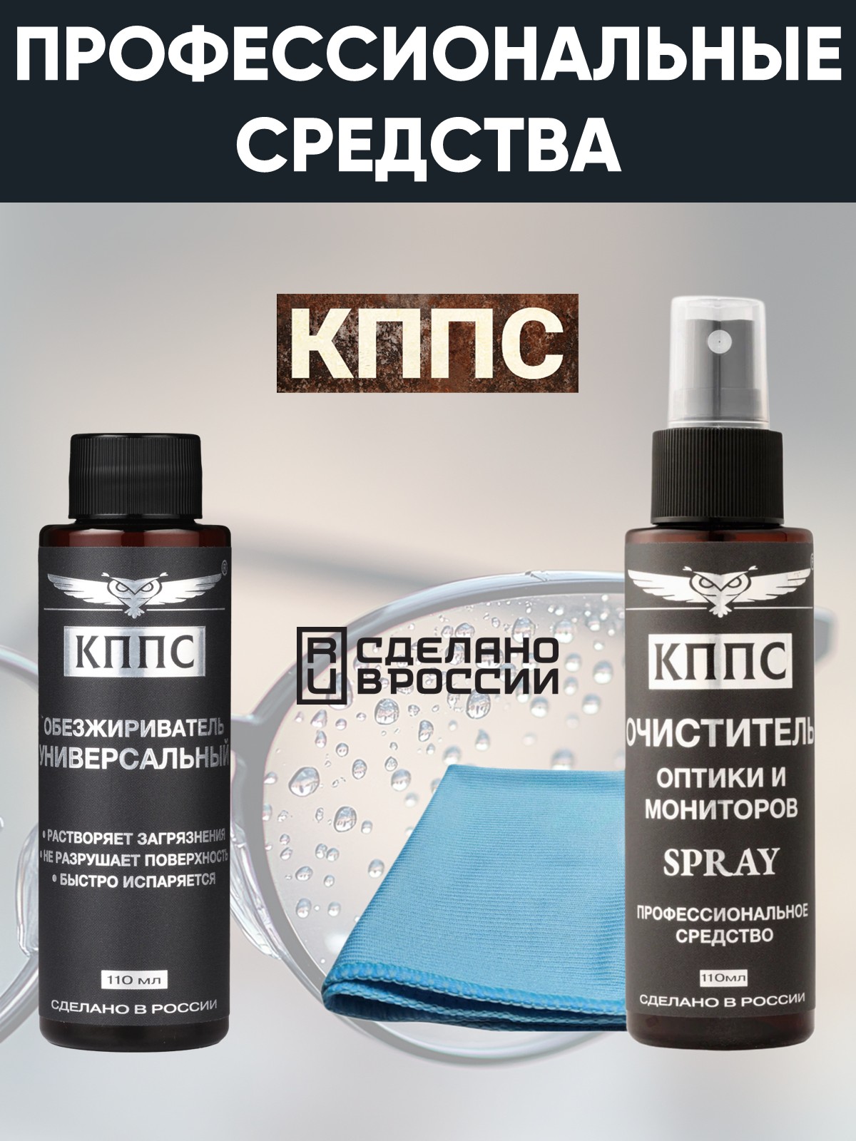 Технические характеристики Очиститель оптики и мониторов КППС SPRAY (110мл) + Универсальный обезжириватель КППС (110мл)