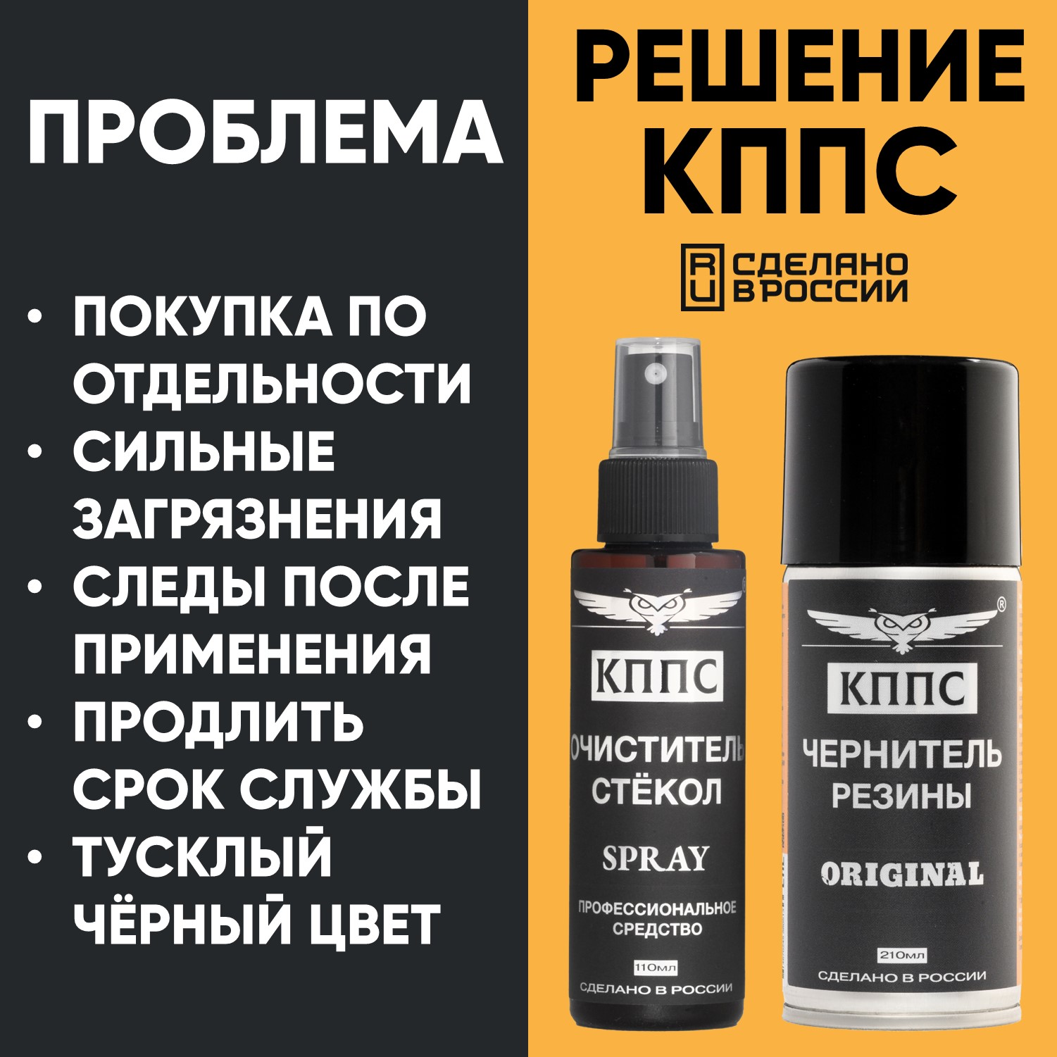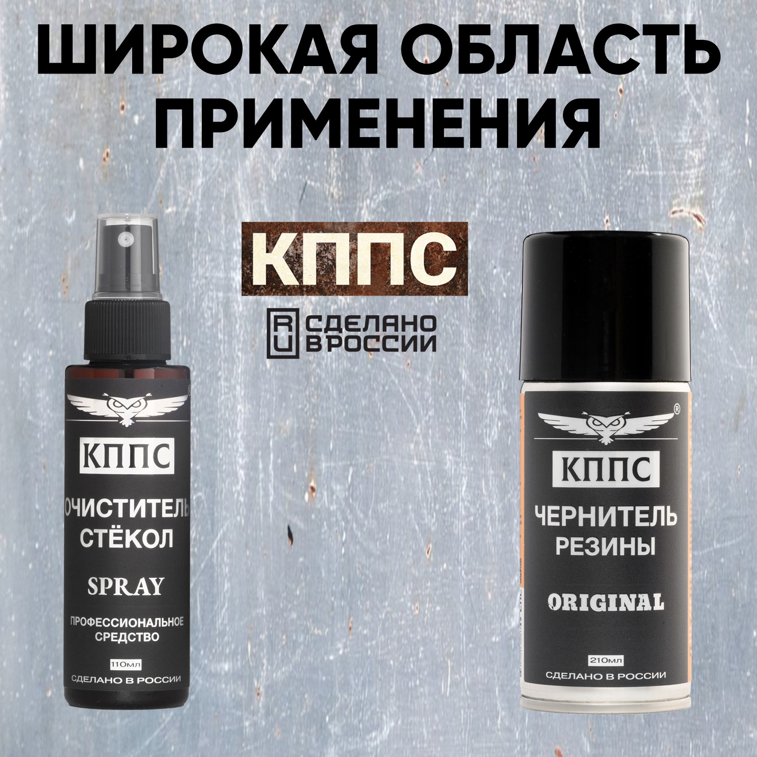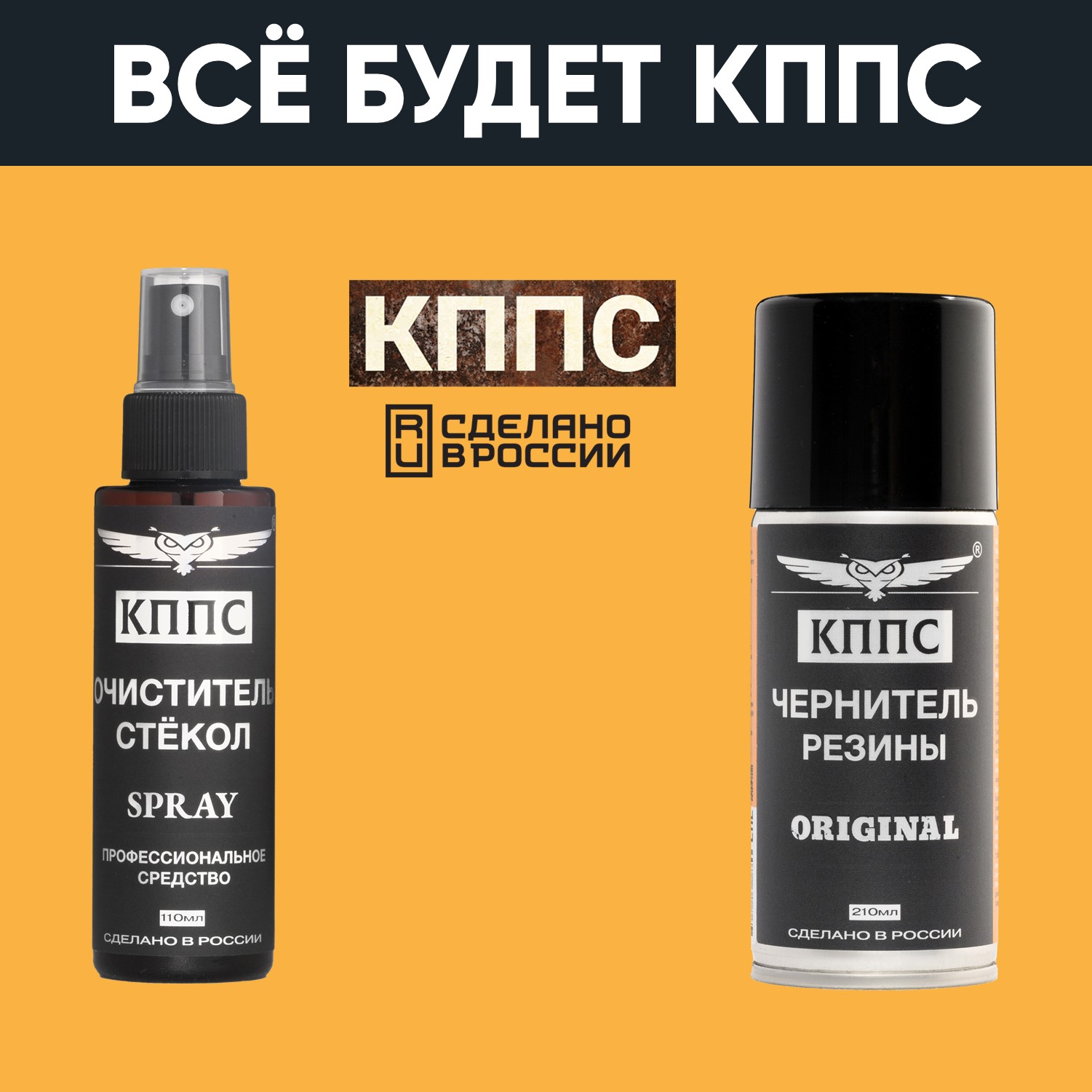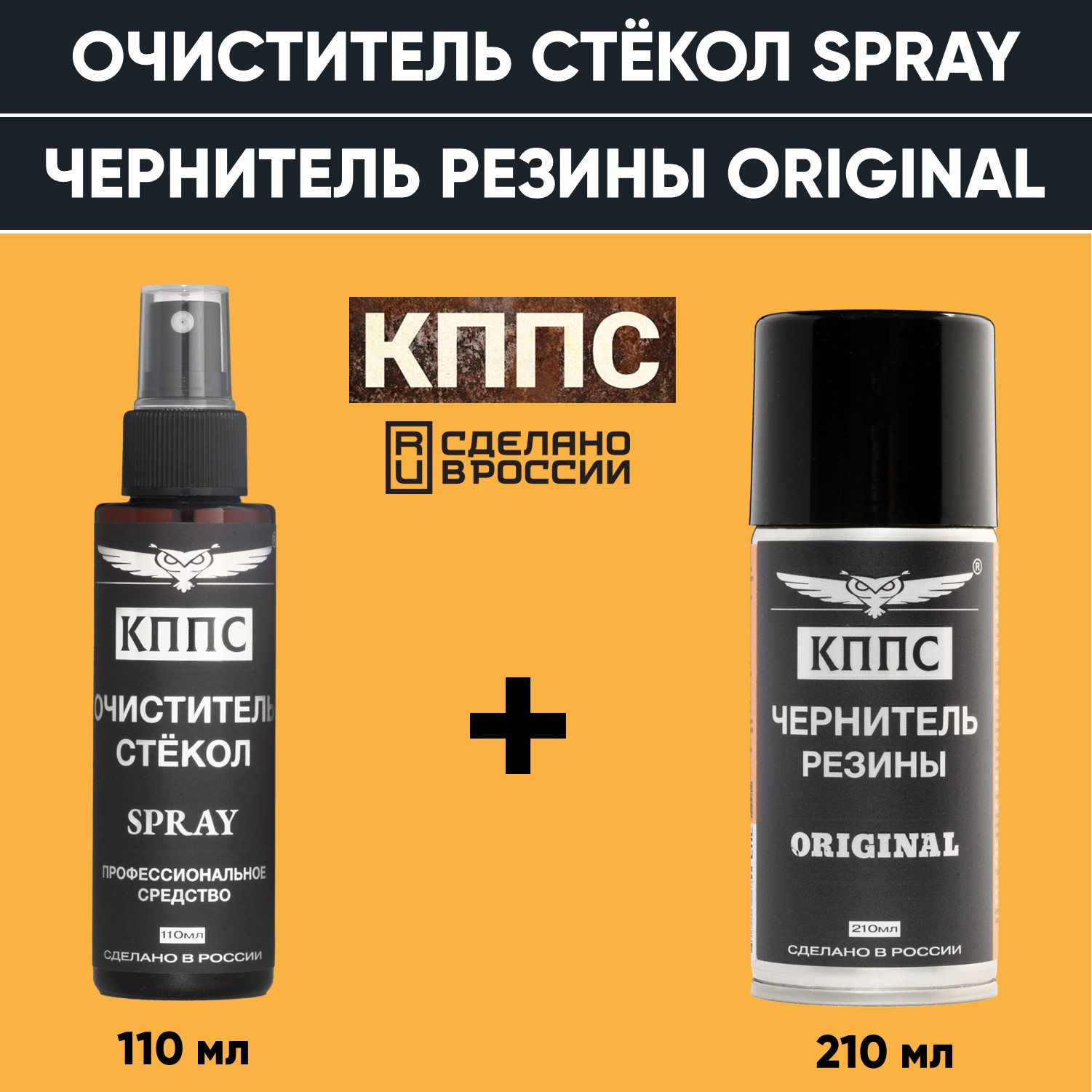 Технические характеристики Очиститель стёкол КППС SPRAY (110мл) + Чернитель резины КППС ORIGINAL (210мл)