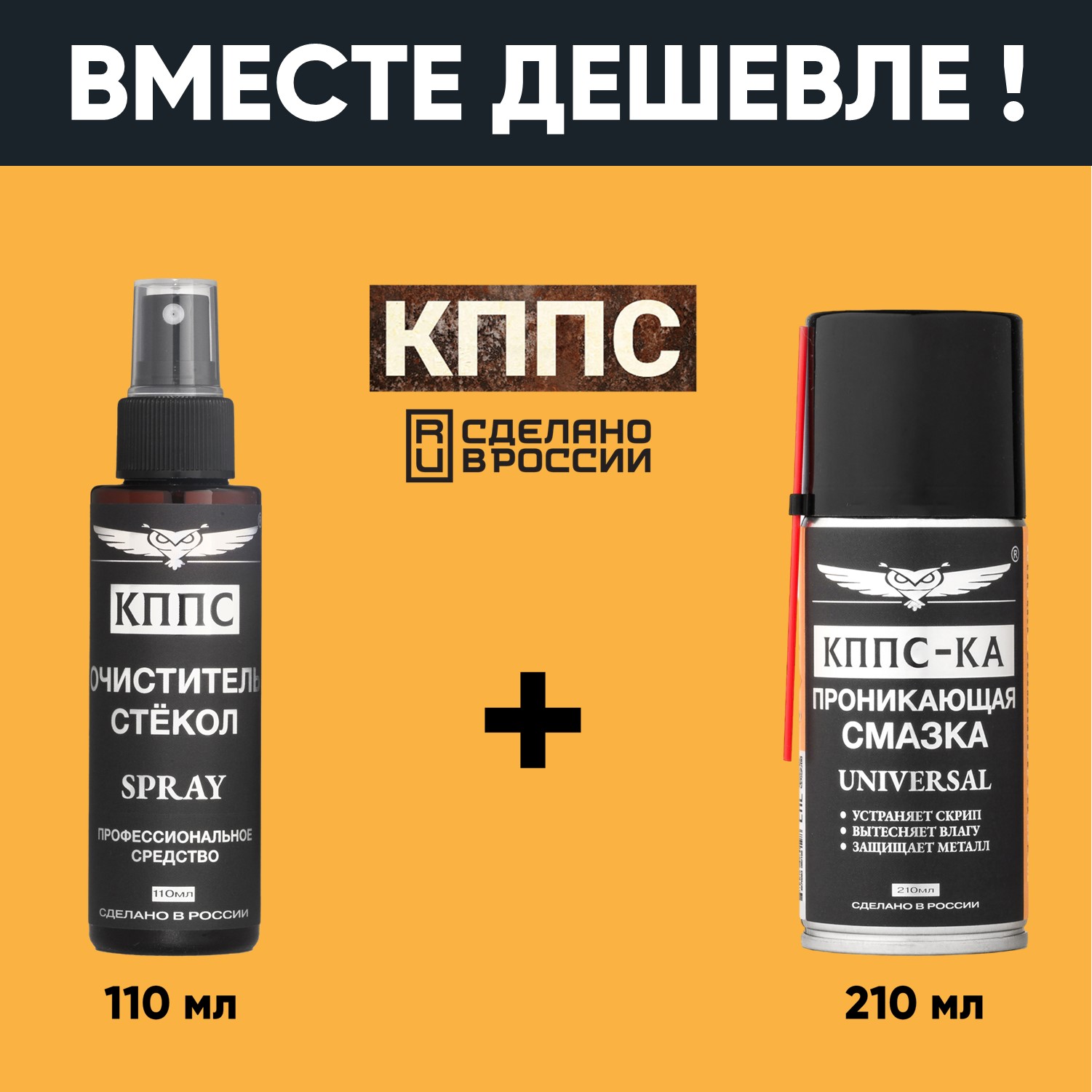 Очиститель стёкол КППС SPRAY (110мл) + Проникающая смазка КППС-КА (210мл)