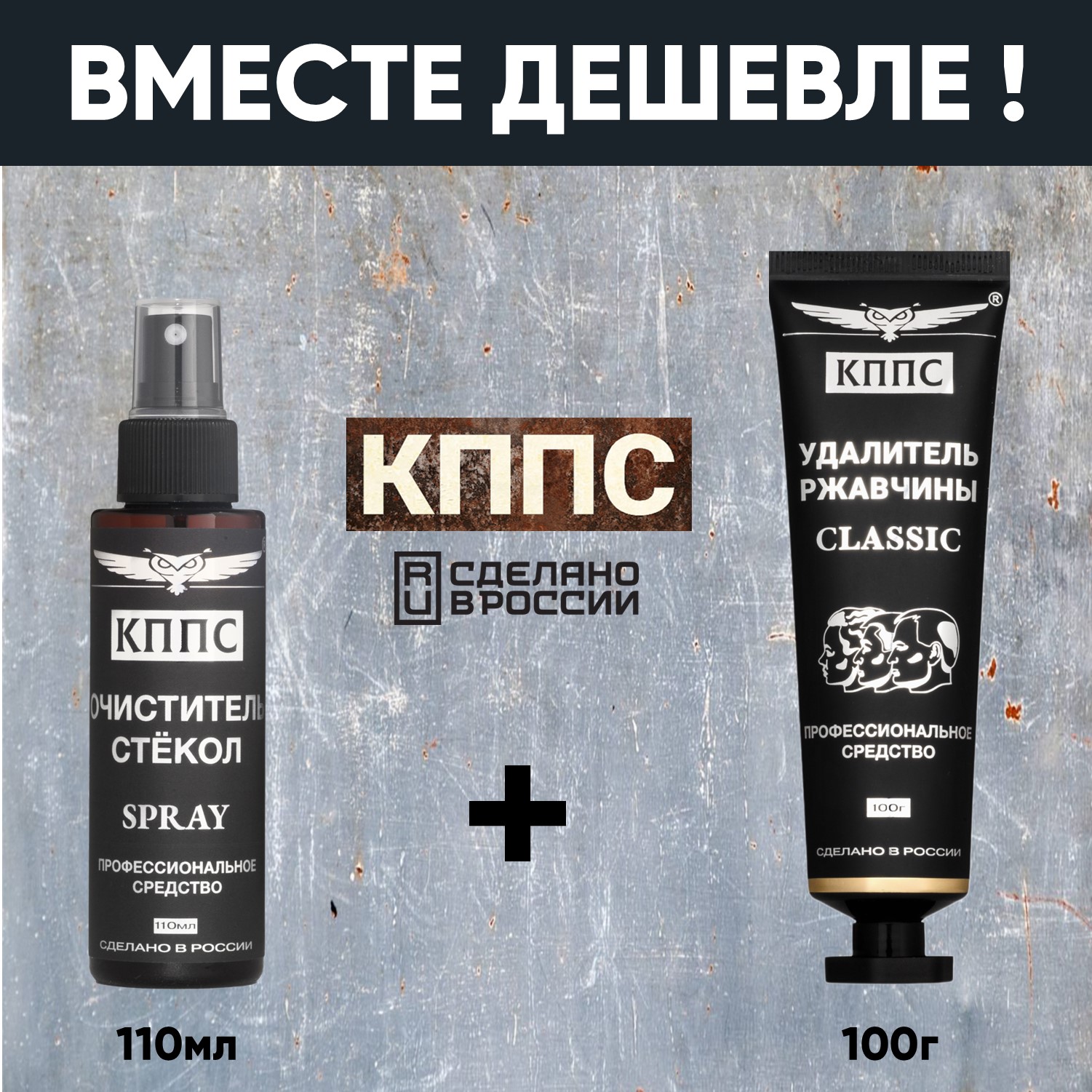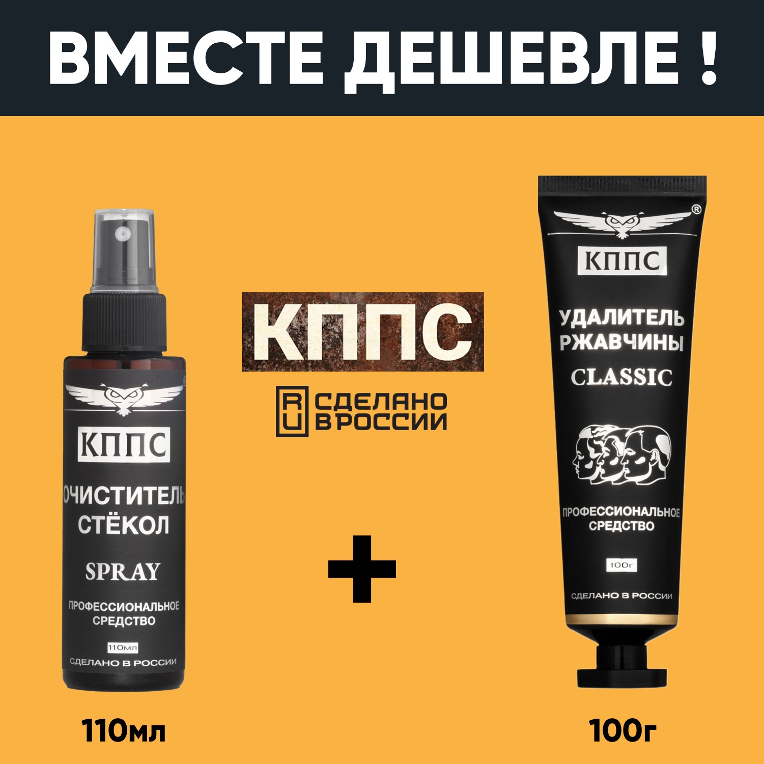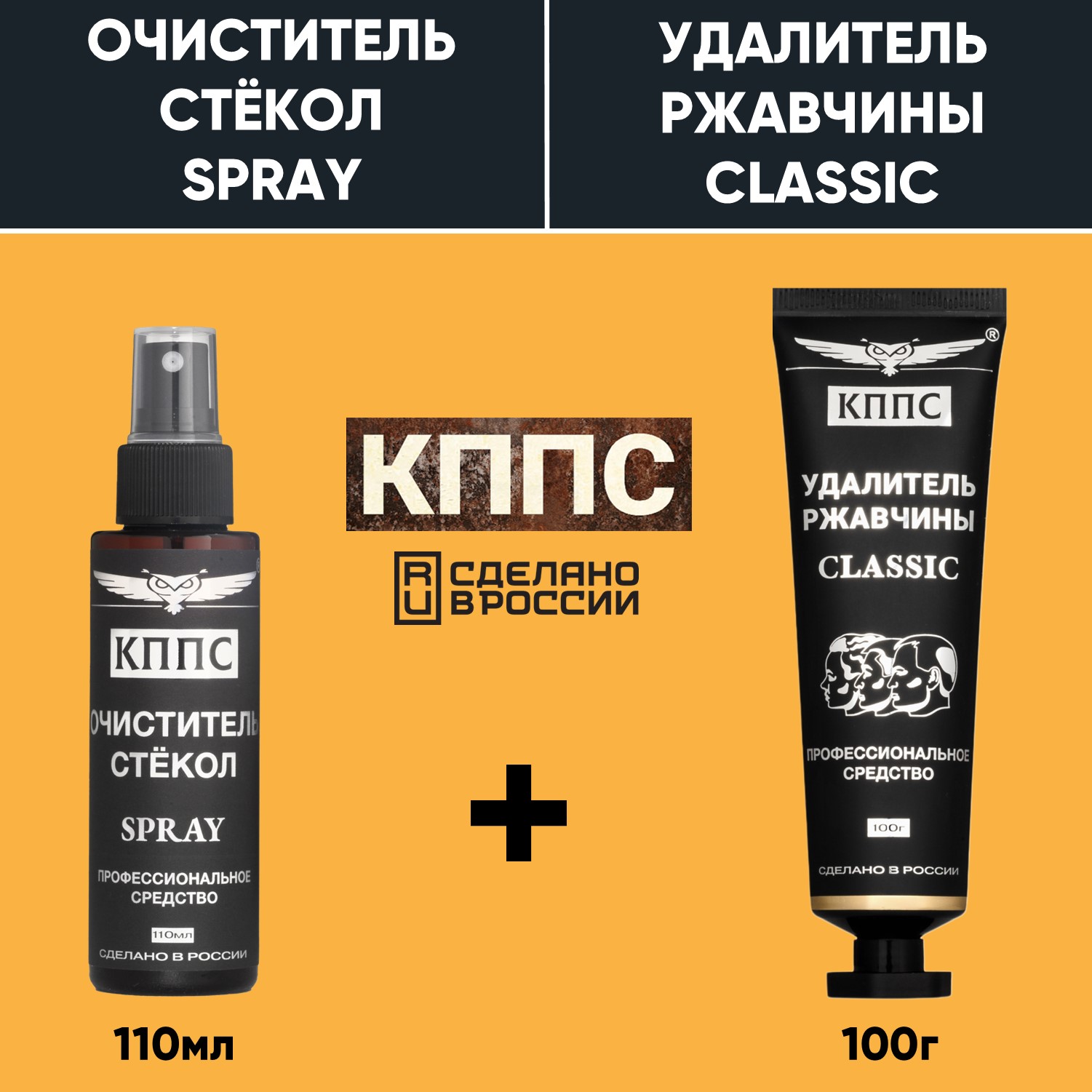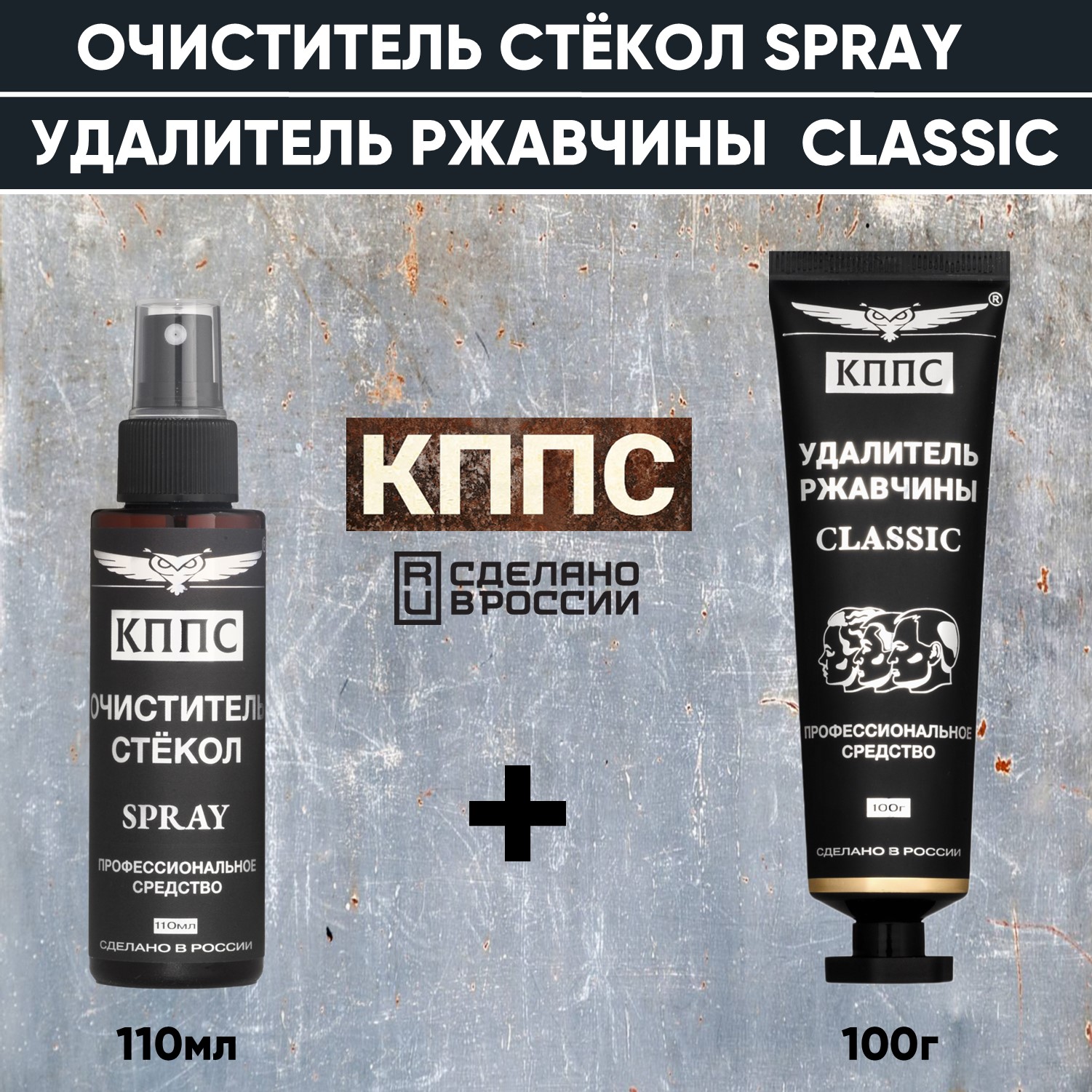 Очиститель стёкол КППС SPRAY (110мл) + Удалитель ржавчины КППС CLASSIC (100г)