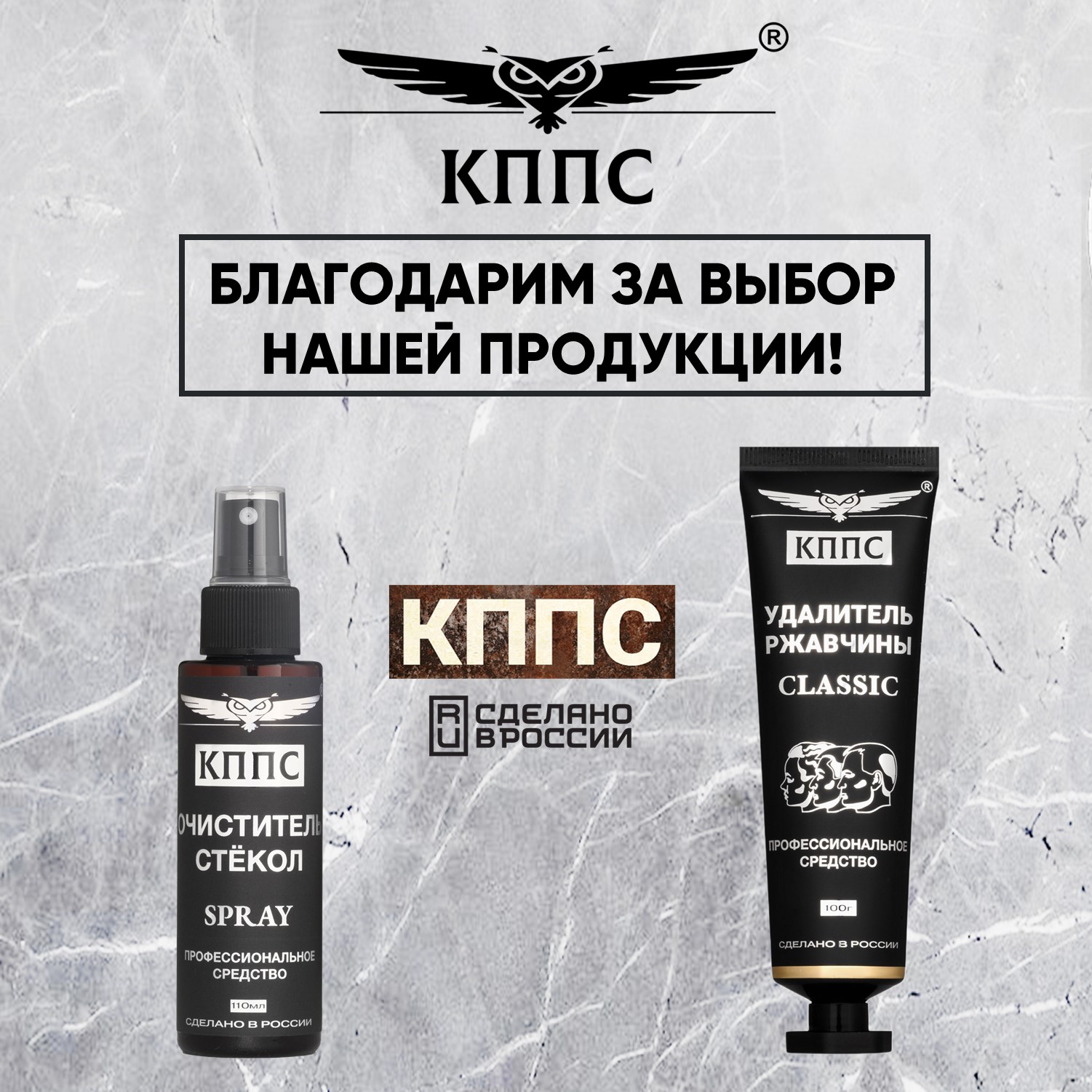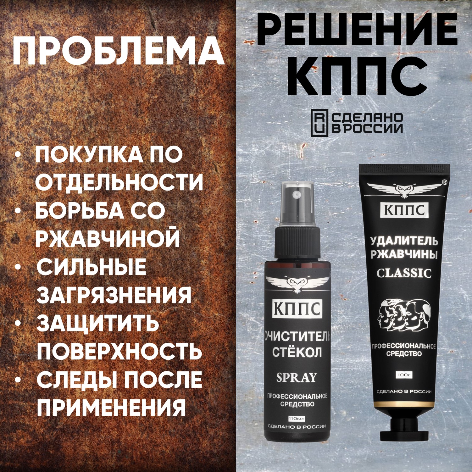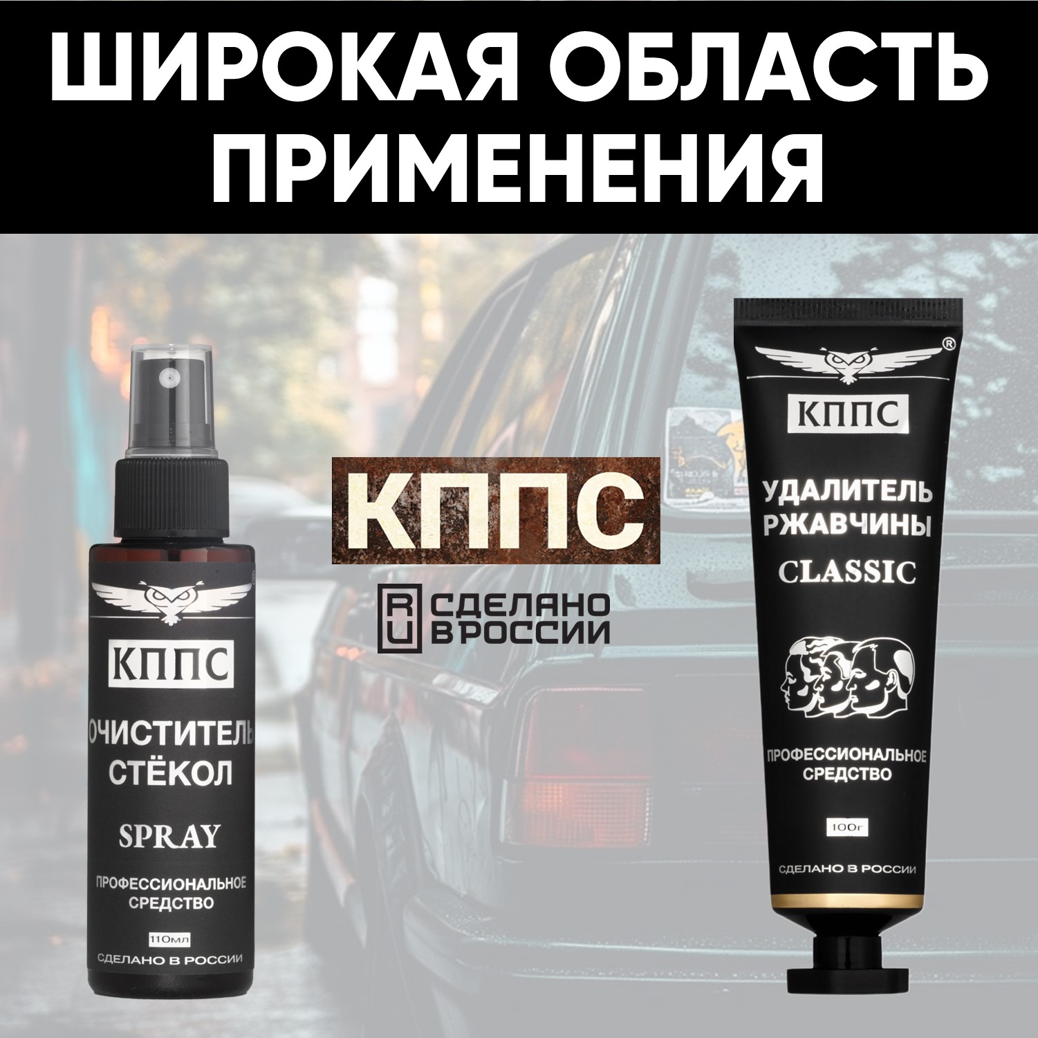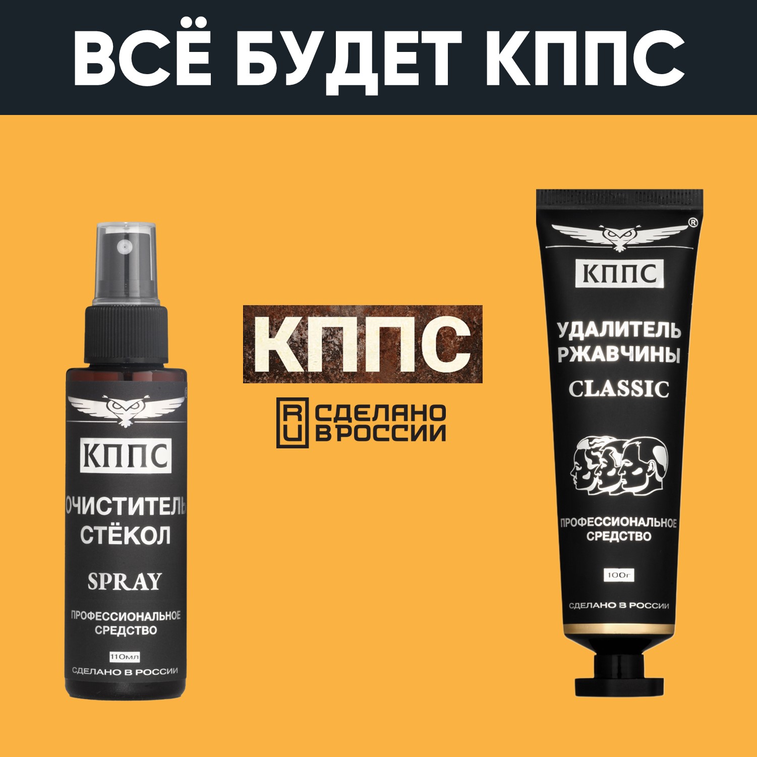 Очиститель стёкол КППС SPRAY (110мл) + Удалитель ржавчины КППС CLASSIC (100г)