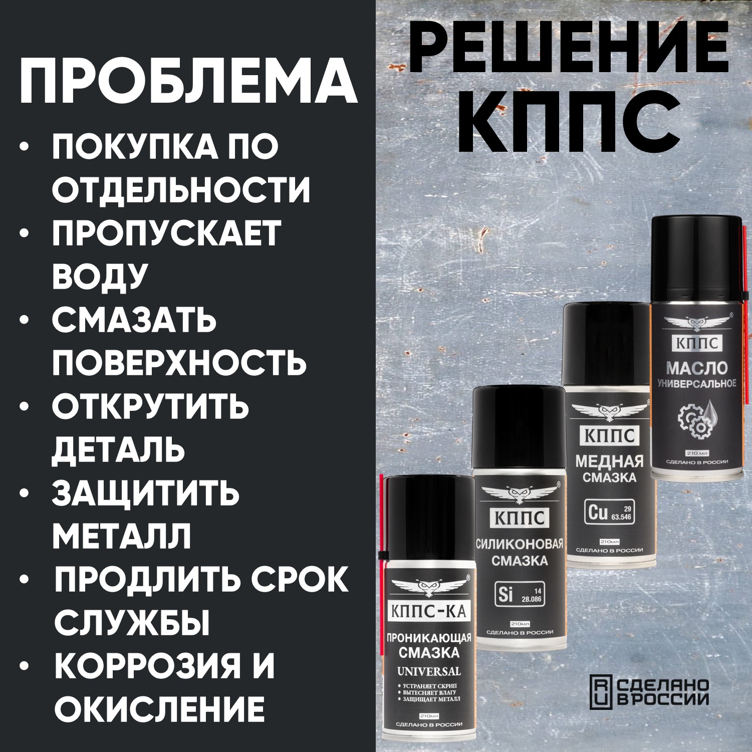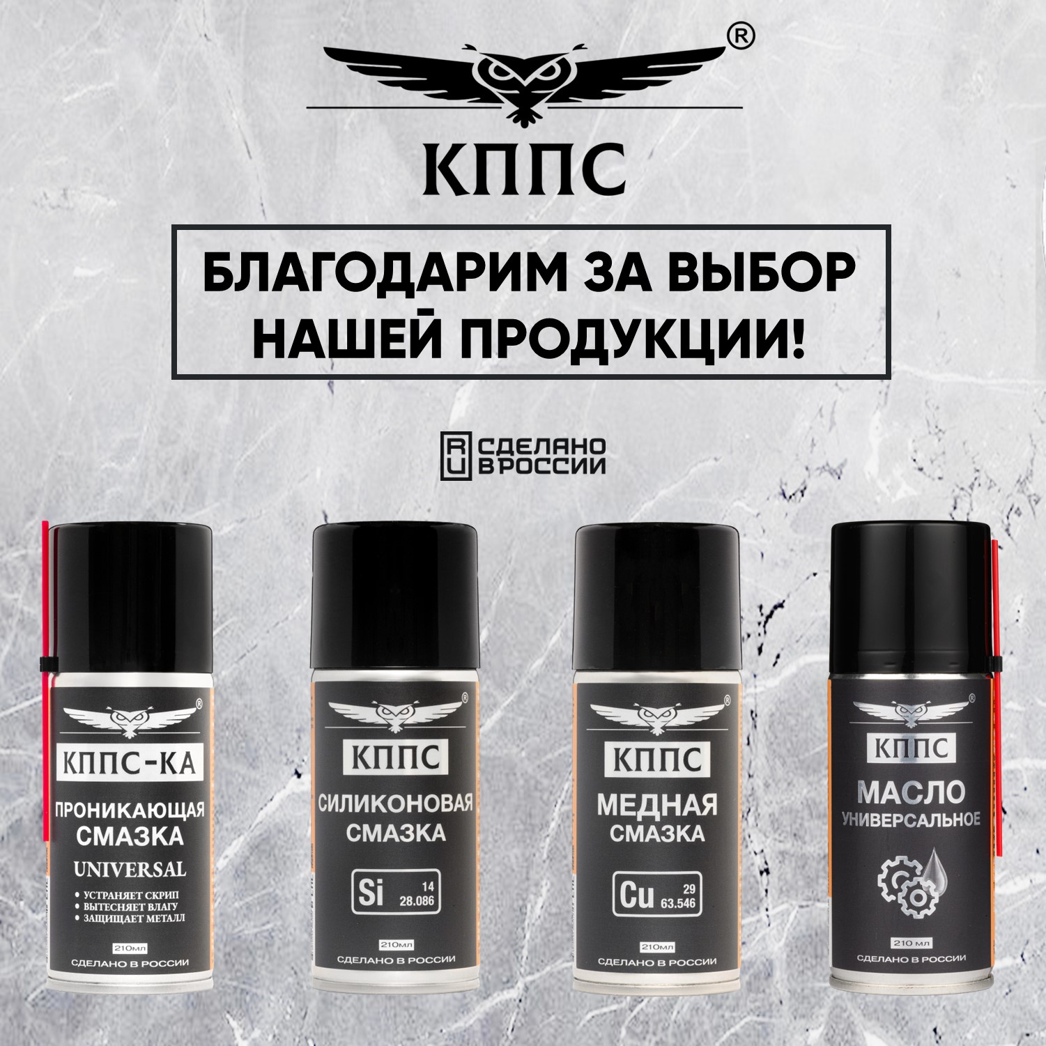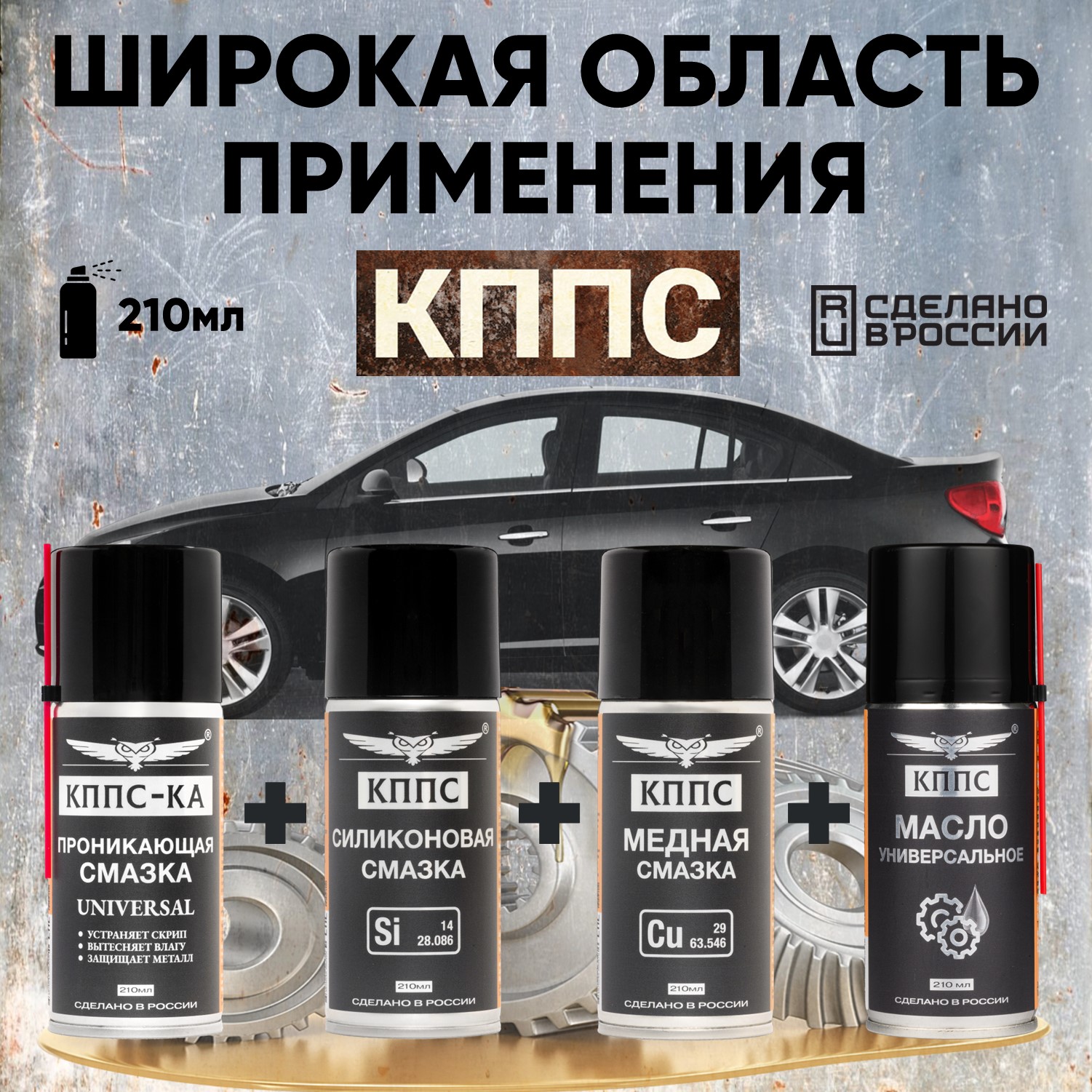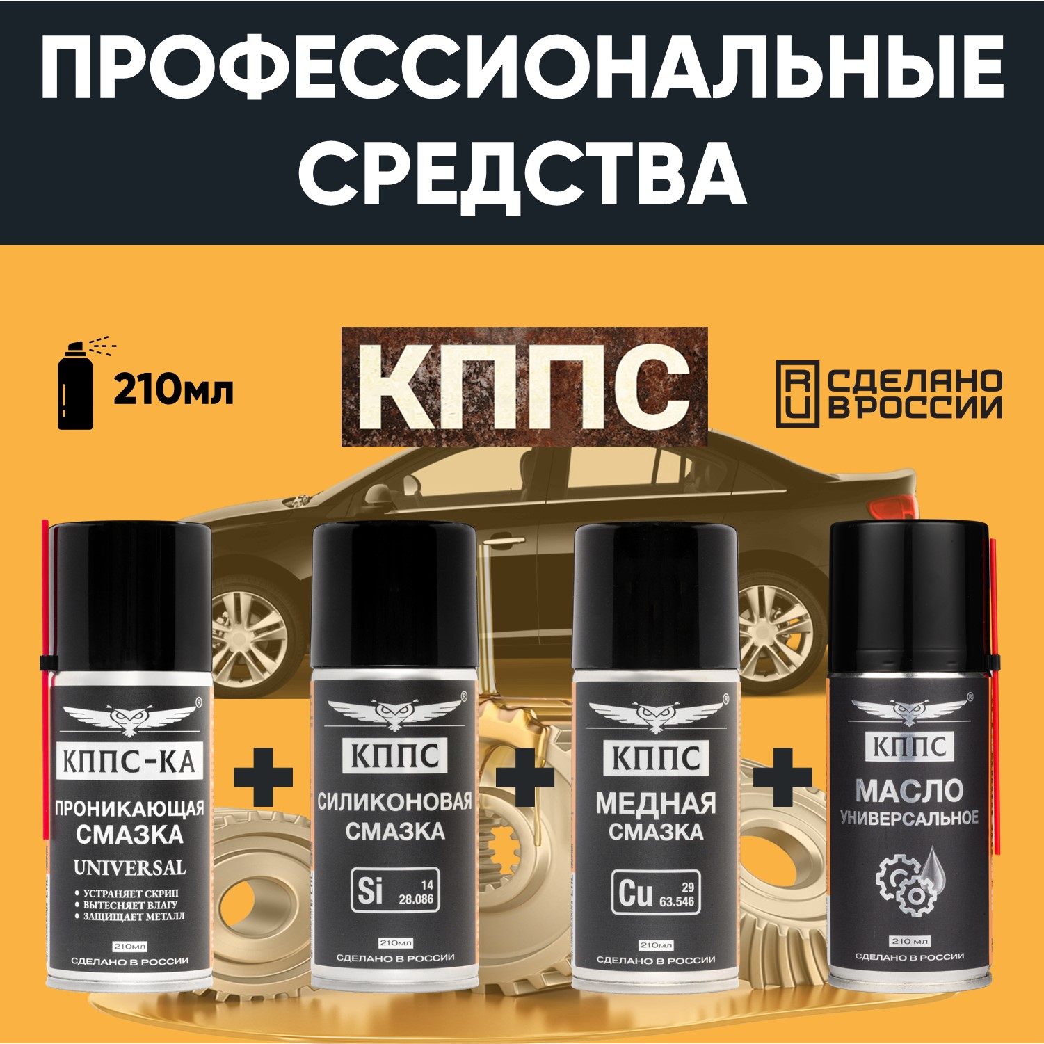 Проникающая смазка КППС-КА UNIVERSAL (210мл) + Силиконовая смазка КППС (210мл) + Медная смазка КППС (210мл) + Универсальное масло КППС (210мл)